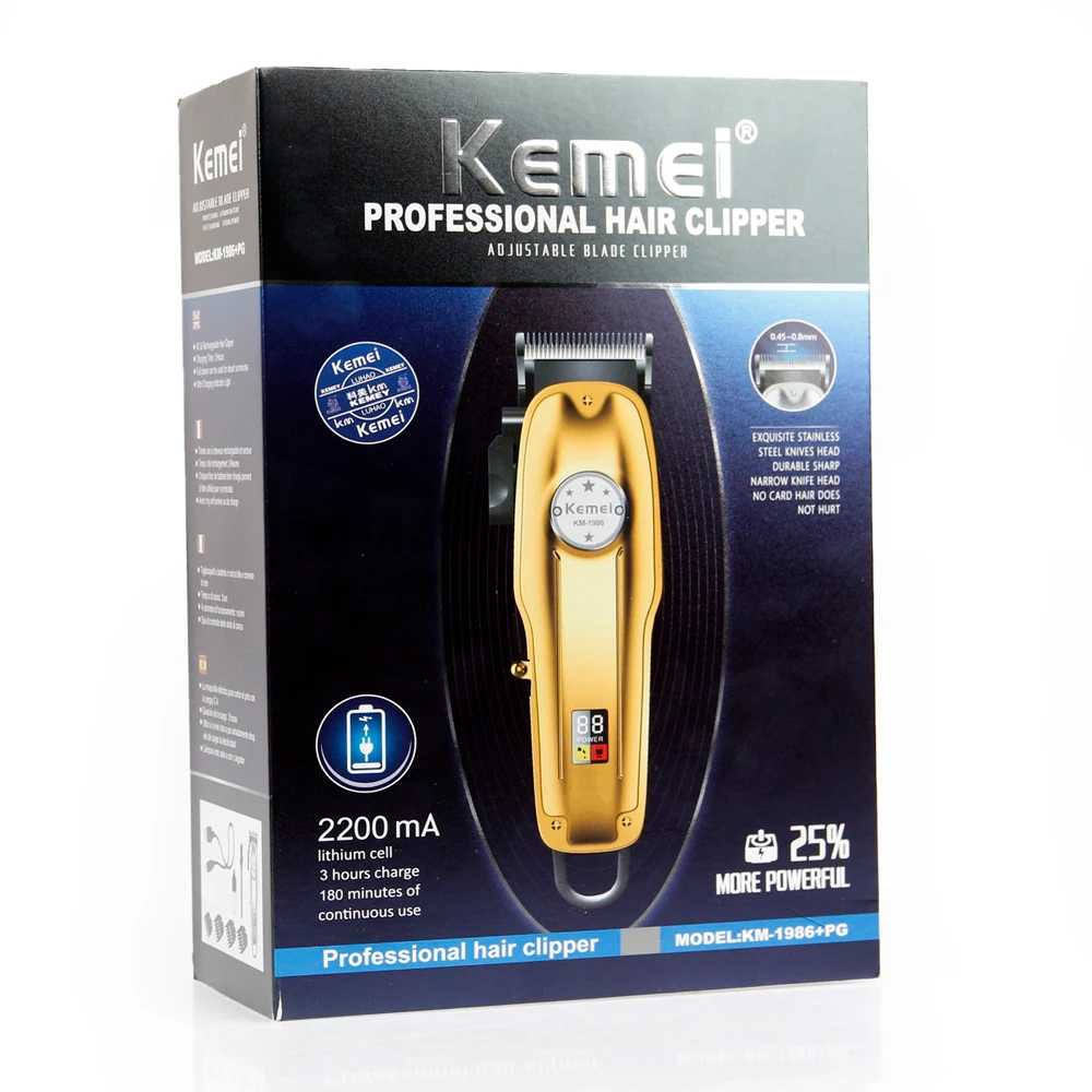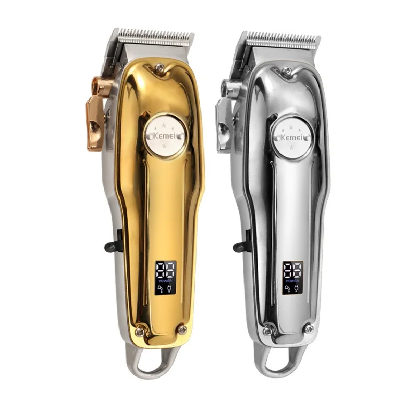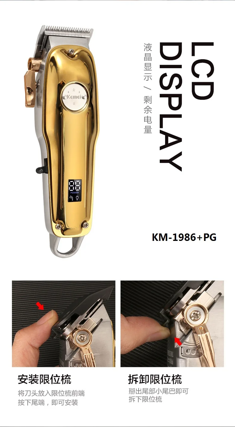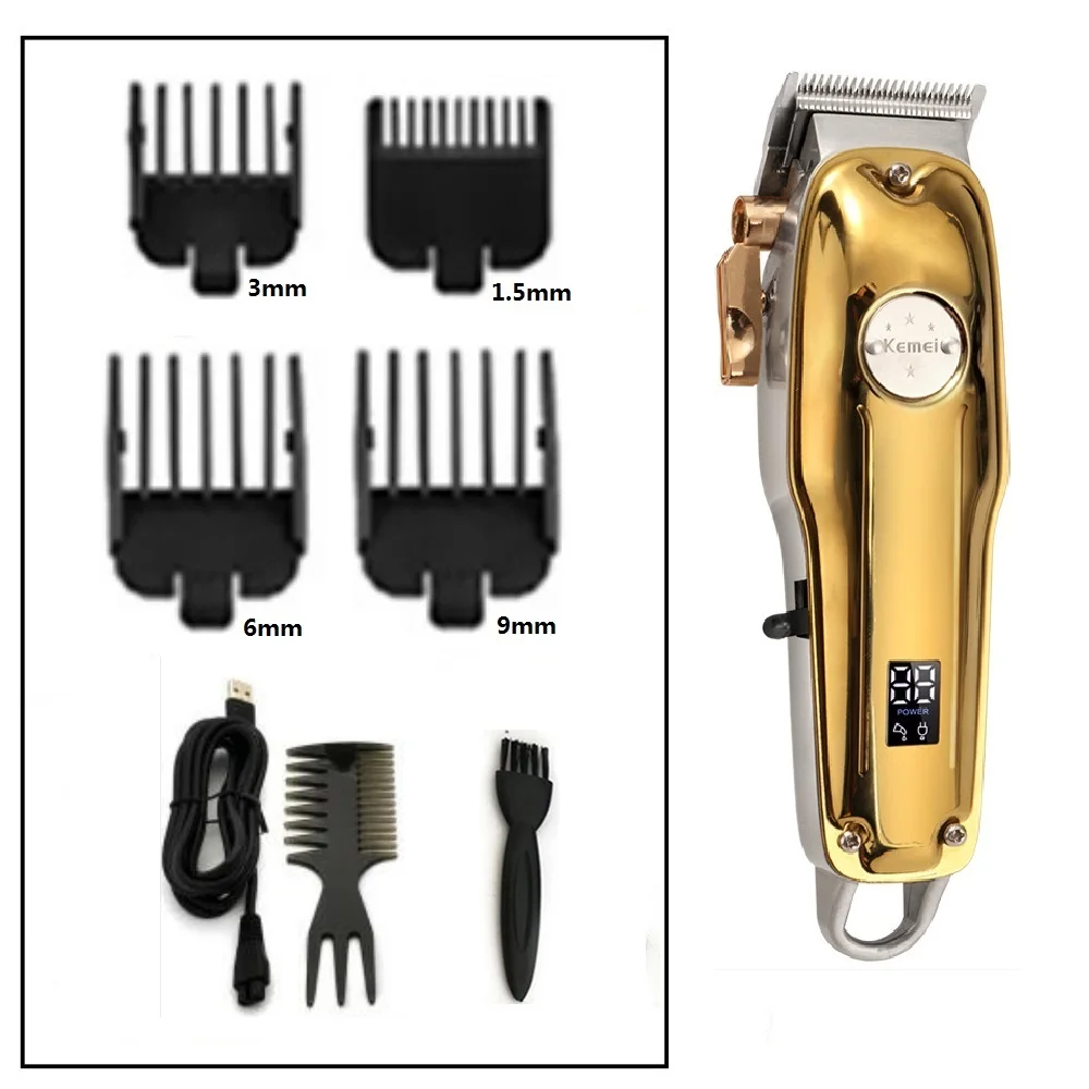 Kemei 1986 цельнометаллическая Парикмахерская профессиональная машинка для стрижки волос электрическая Беспроводная ЖК-машинка для стрижки волос золотистого и серебряного цвета косилка