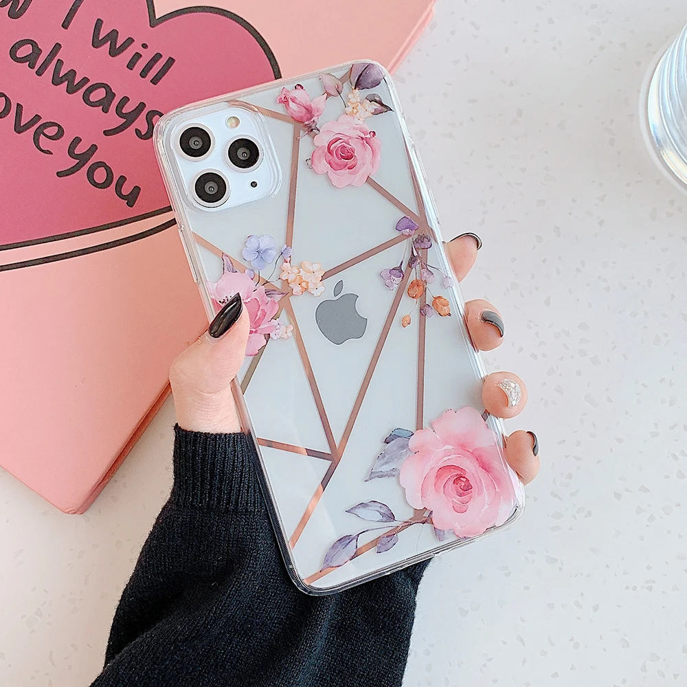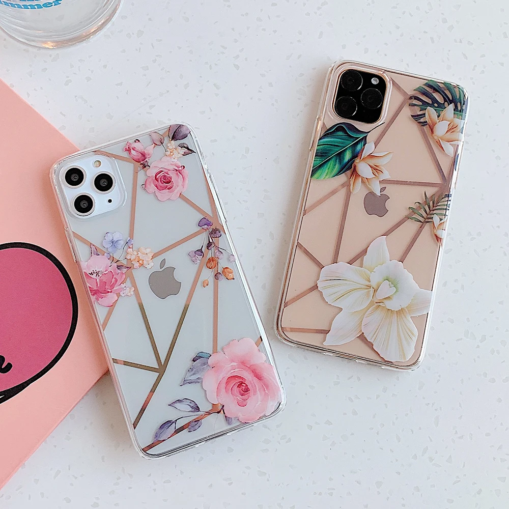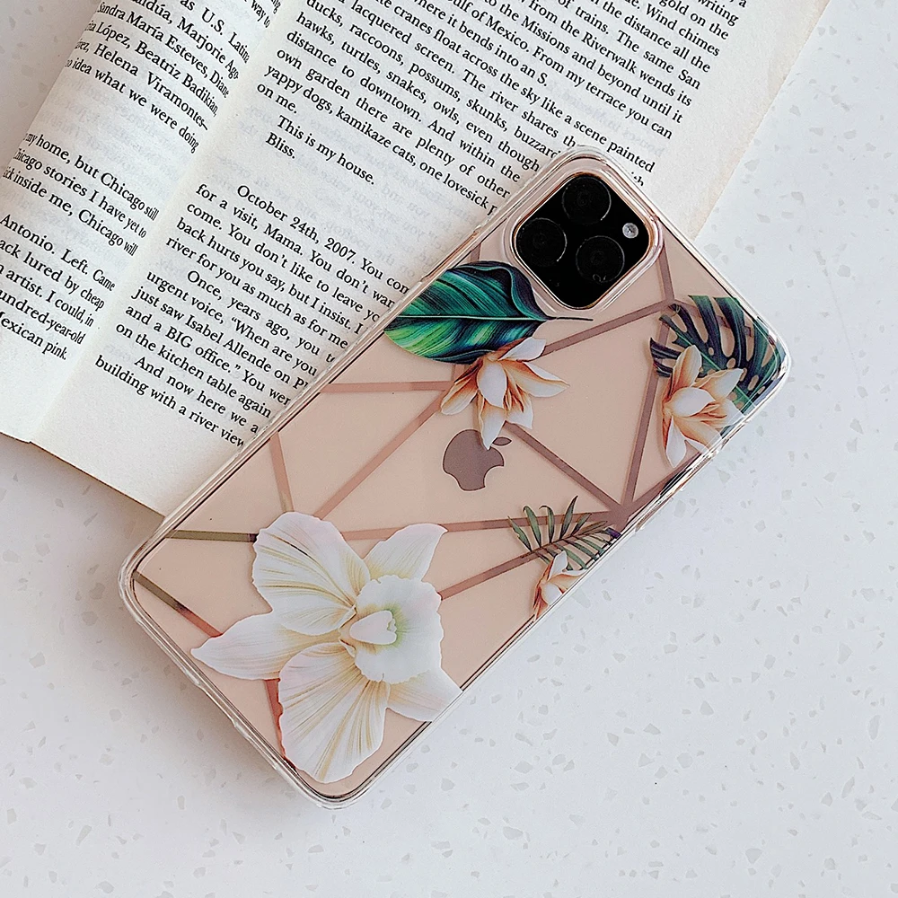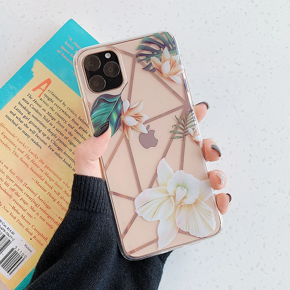 LOVECOM гальванический цветочный лист геометрический чехол для телефона для iPhone 11 Pro Max XR XS Max X 7 8 Plus Мягкий IMD Прозрачный задний чехол подарки