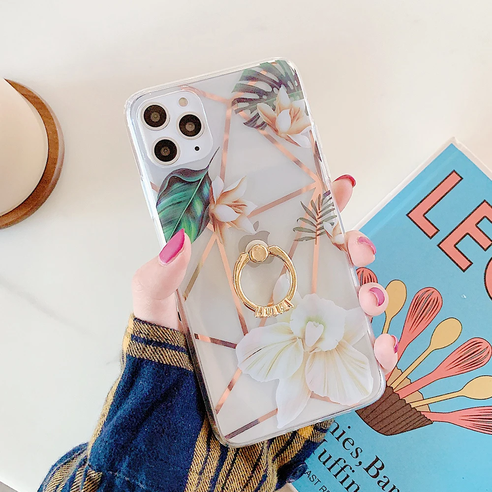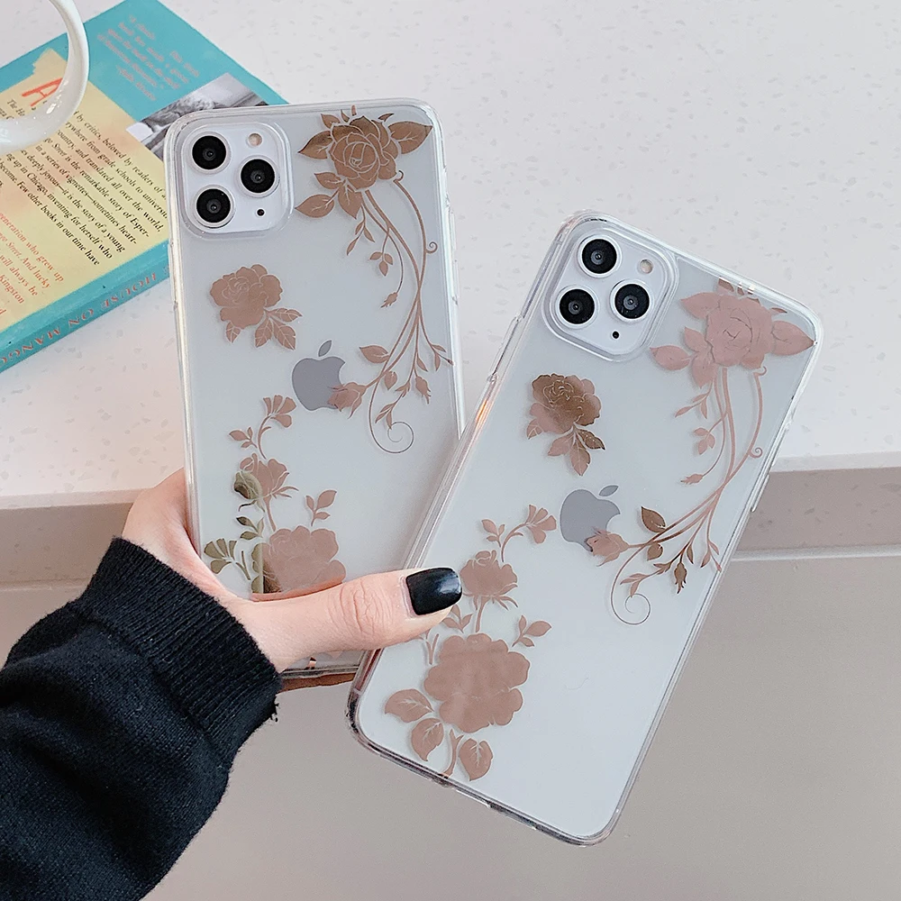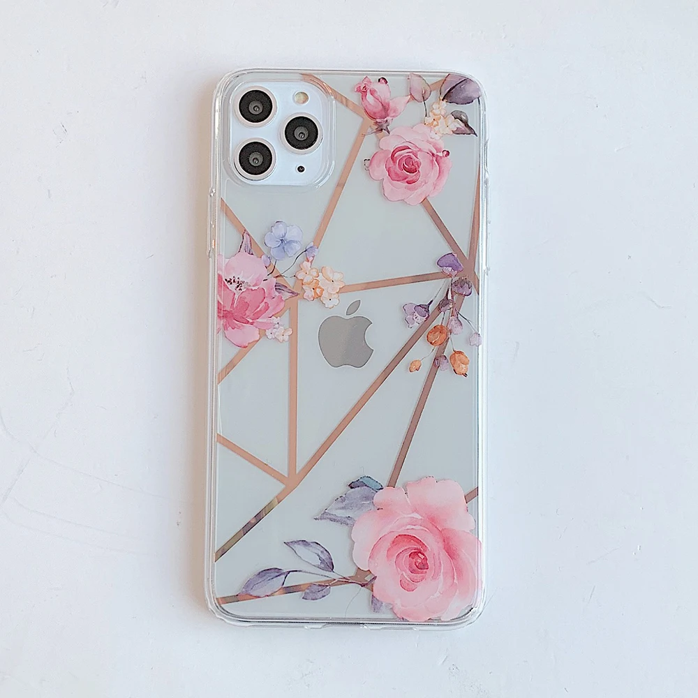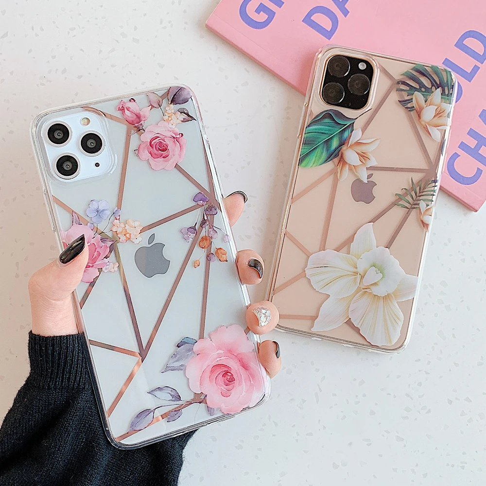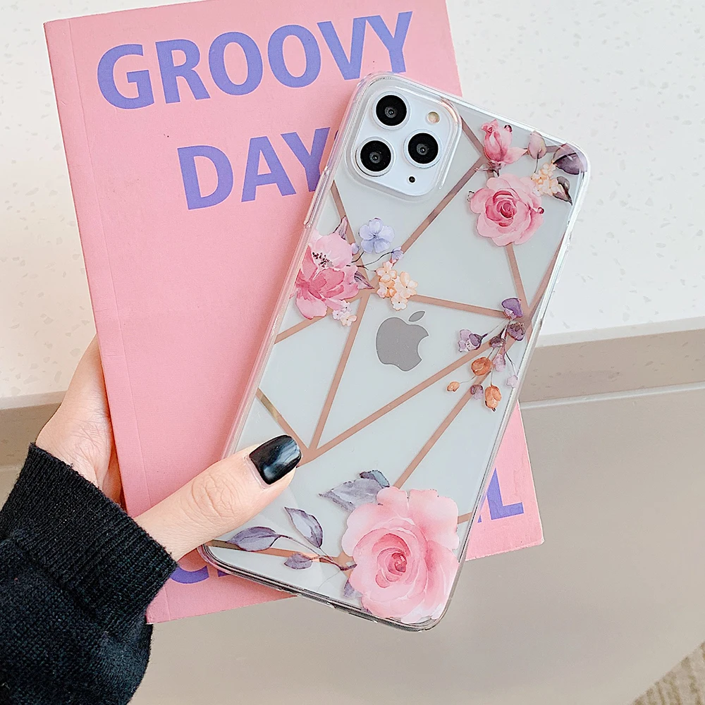 LOVECOM гальванический цветочный лист геометрический чехол для телефона для iPhone 11 Pro Max XR XS Max X 7 8 Plus Мягкий IMD Прозрачный задний чехол подарки