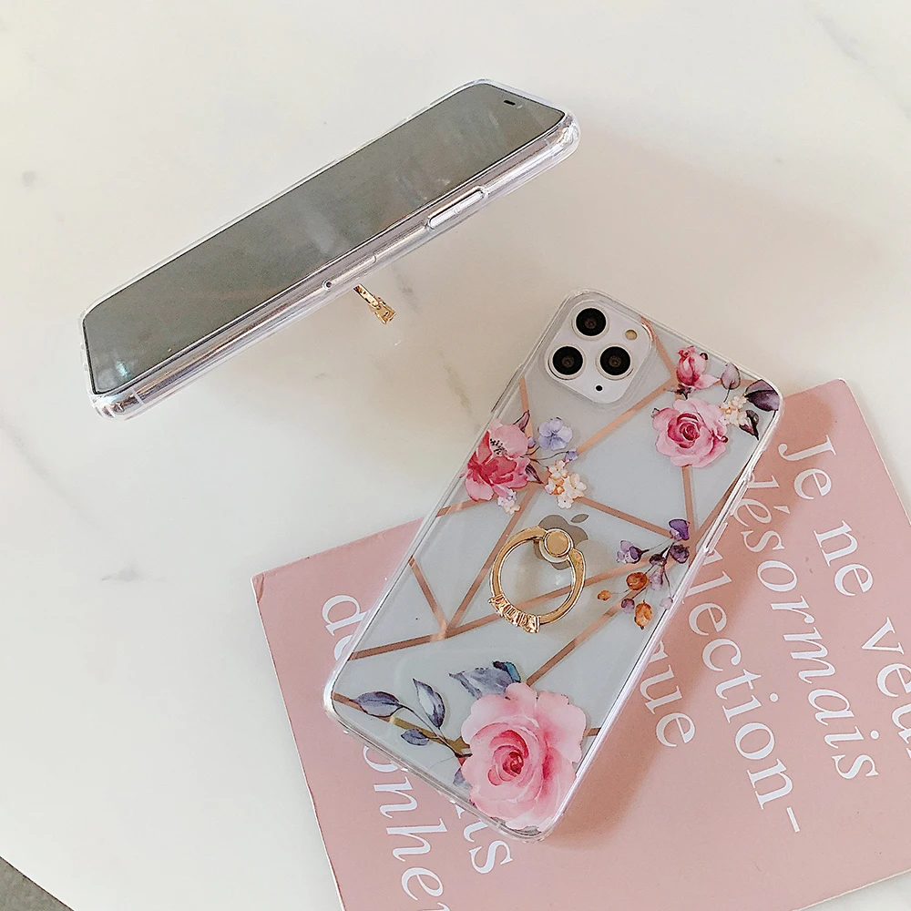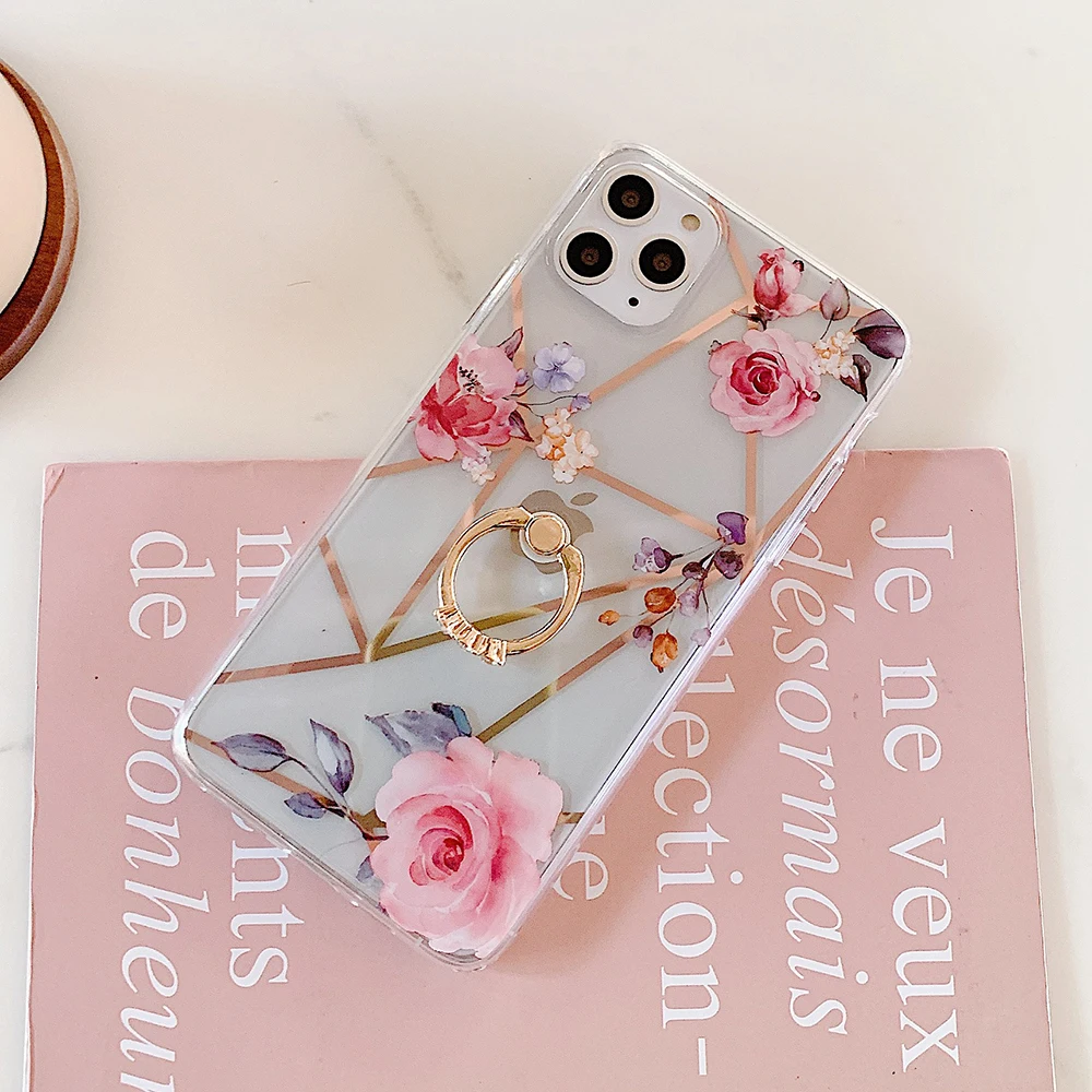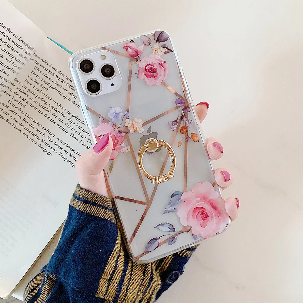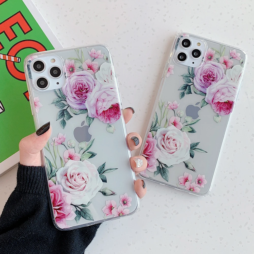LOVECOM гальванический цветочный лист геометрический чехол для телефона для iPhone 11 Pro Max XR XS Max X 7 8 Plus Мягкий IMD Прозрачный задний чехол подарки