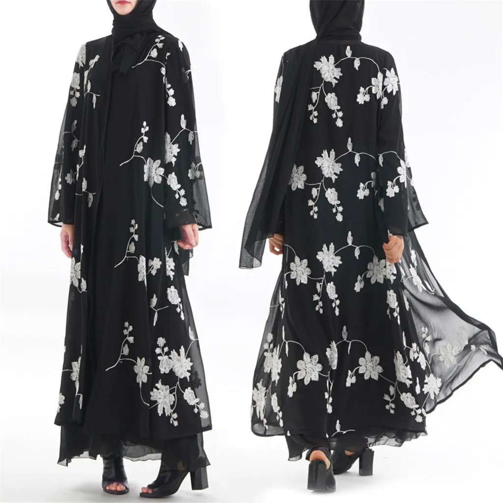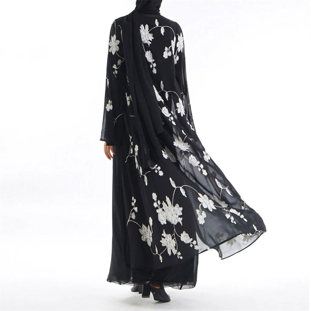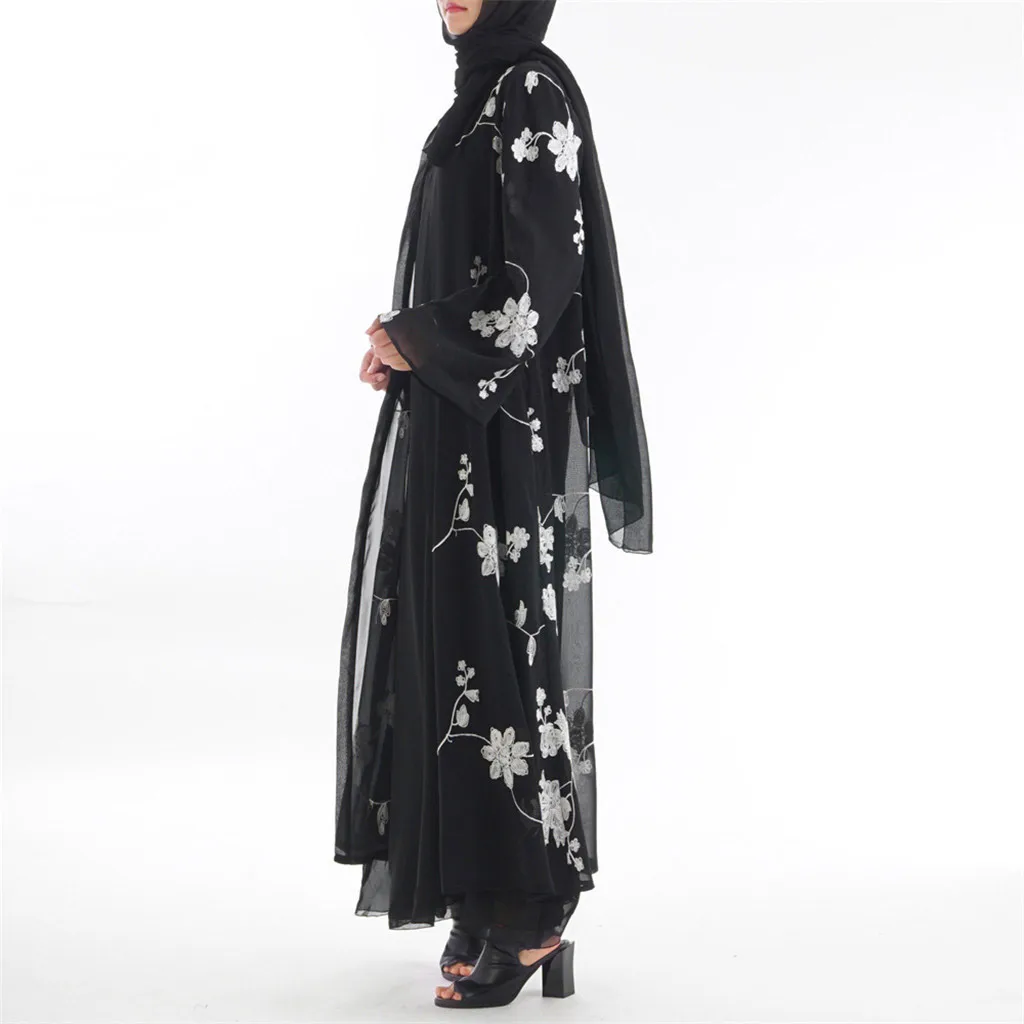 Мусульманский халат для женщин цветочный принт Макси платье кимоно открытый Абая халат Кафтан Дубай