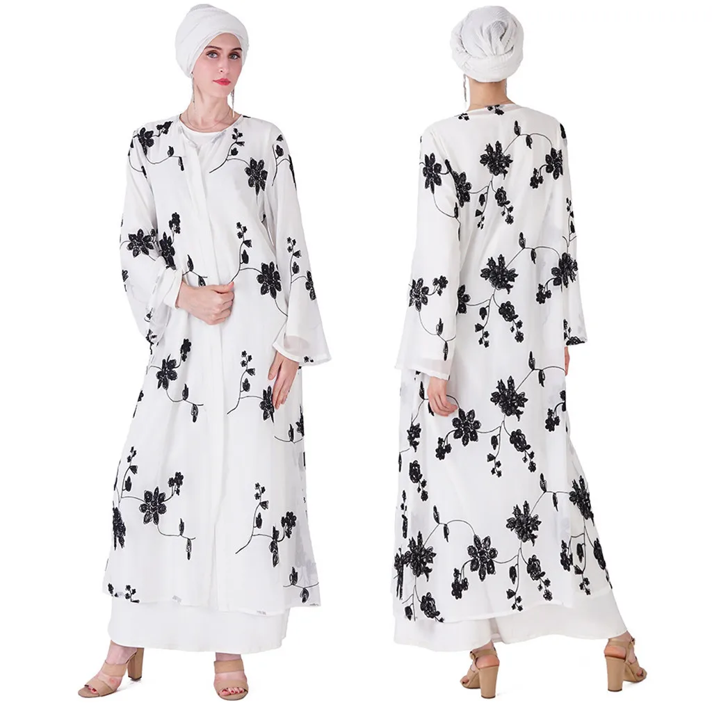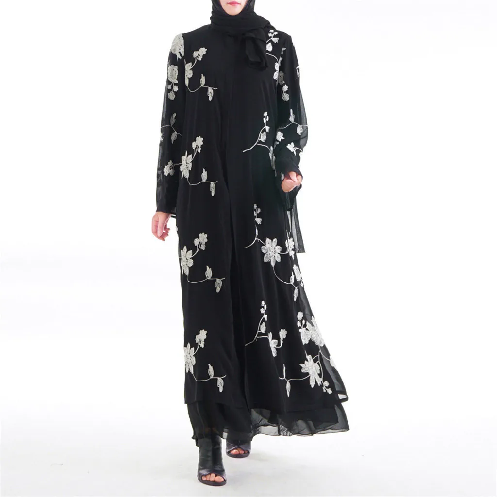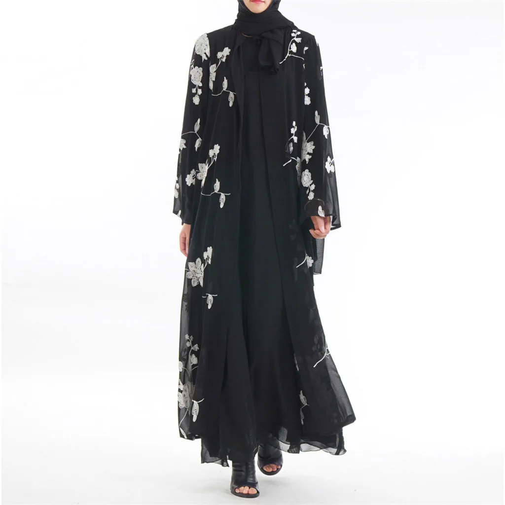 Мусульманский халат для женщин цветочный принт Макси платье кимоно открытый Абая халат Кафтан Дубай