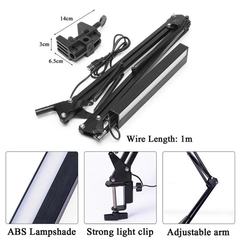 Регулируемый светильник на 360 градусов, регулируемая рама на 180 градусов. Стильный и благородный внешний вид, приятный для глаз. Нажмите на сенсорный выключатель, чтобы свободно регулировать яркость. Подходит для работы, чтения, учебы и т. Д. Легко крепится на стол, удобно в эксплуатации. Описание: Подходит для гостиной, спальни и т. д. Мягкий светильник, не вредит глазам. Хорошо отполированный, без острых краев, безопасный на ощупь. Технические характеристики: Материал: металл + АБС Оболочки Цвет: черный Светильник: белый + теплый белый Товар Размеры: 330x330x220x40mm Номинальная Мощность: 3,6 Вт (18x0.2 Вт/светодиодный модели) Перезаряжаемая: Номинальная мощность зарядки: 5 Вт Цветовая температура: 5000K Светодиодный Кол-во: 18 Номинальная Напряжение: DC5V Световой поток: 156LM Длина линии: 150 см Тип: электрический, перезаряжаемый (опционально) Посылка включает в себя: 1 х светодиодный Настольный светильник |