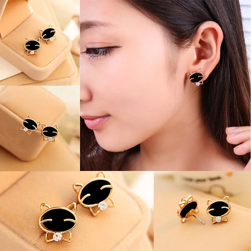 1 пара сережек-гвоздиков с черной улыбкой и котом высокого качества