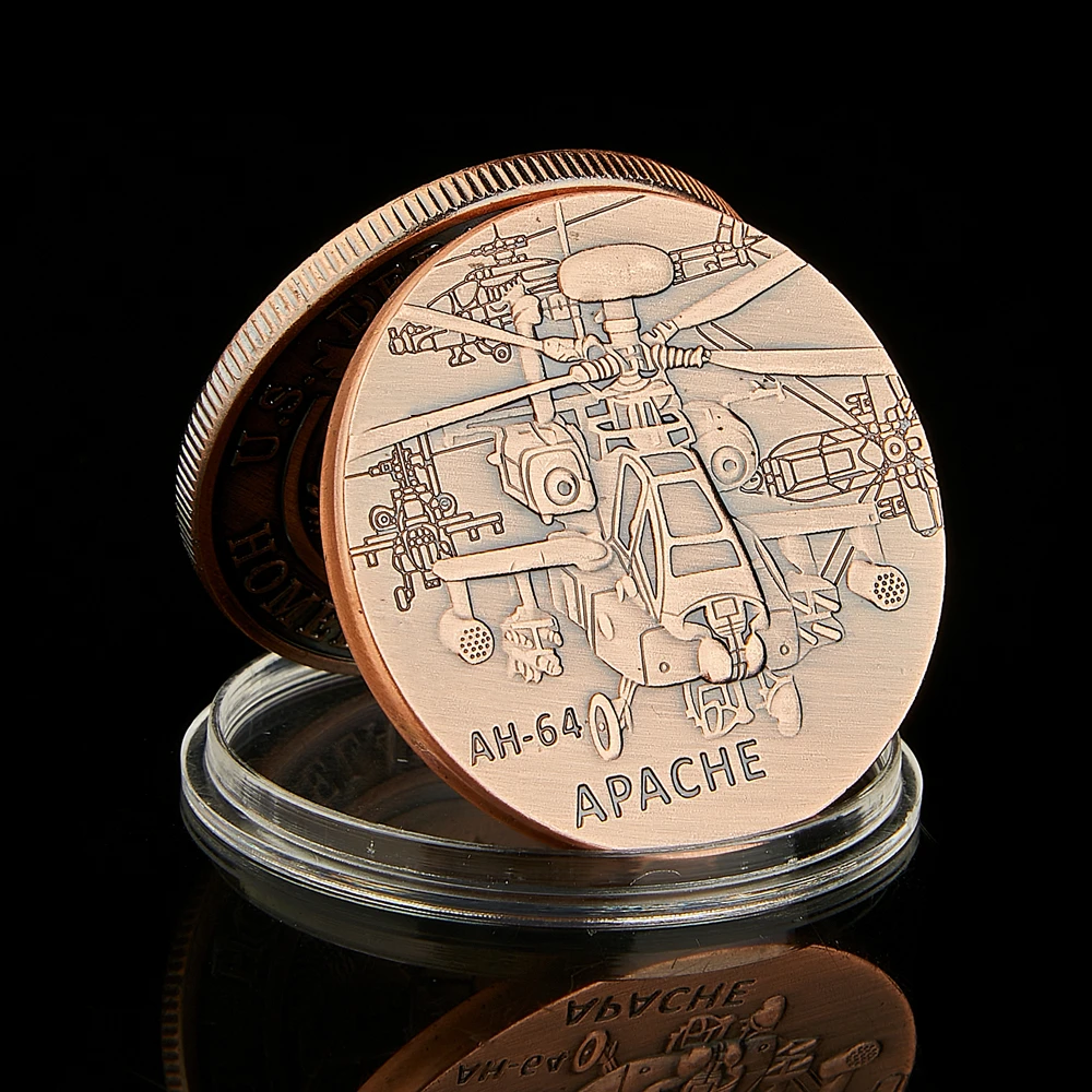 Американская армия латунь вызов монеты AH-64 Вертолет Новинка Американский жетон коллекция монет W/коробка защиты