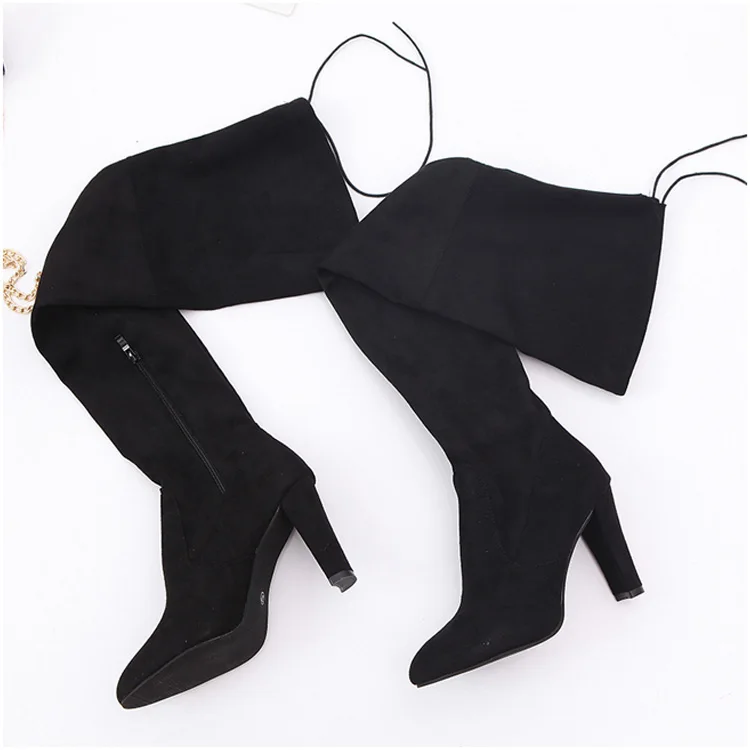 Тонкие женские сапоги; Женская зимняя обувь; Замшевые ботфорты; Зимняя обувь; Женские модные осенние сапоги на высоком каблуке; #39