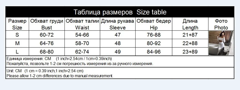 Таблица размеров