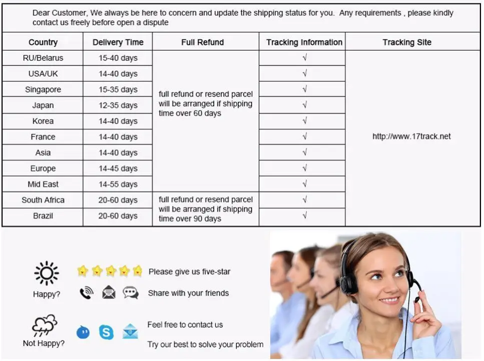 [Время подготовки] 1-3 рабочих дня для подготовки Ваших заказов. [Защита покупки] Если срок защиты вашей покупки истекает, пожалуйста, свяжитесь с нами, и мы можем помочь вам продлить его, так что ваши деньги не пойдут на наш счет. [Оптовая Продажа] пожалуйста, свяжитесь с нами, у нас есть скидка 2%-5%. [Прямая поставка] Мы отправим товары вашим клиентам напрямую и не оставим нашу информацию в посылка. [Политика возврата] Бесплатный обмен на неправильно отправленный товар или товар поврежден. По причине не нравится стиль/цвет, покупатель несет ответственность за возврат товара.