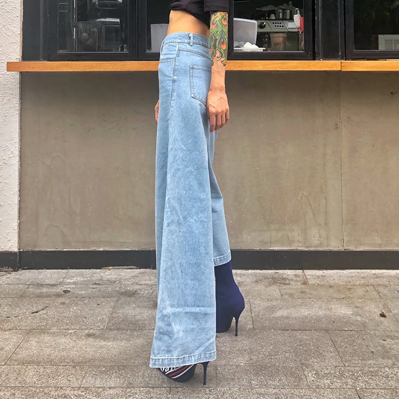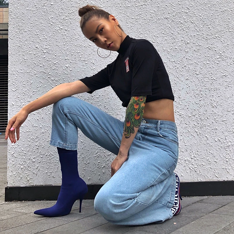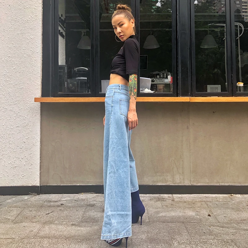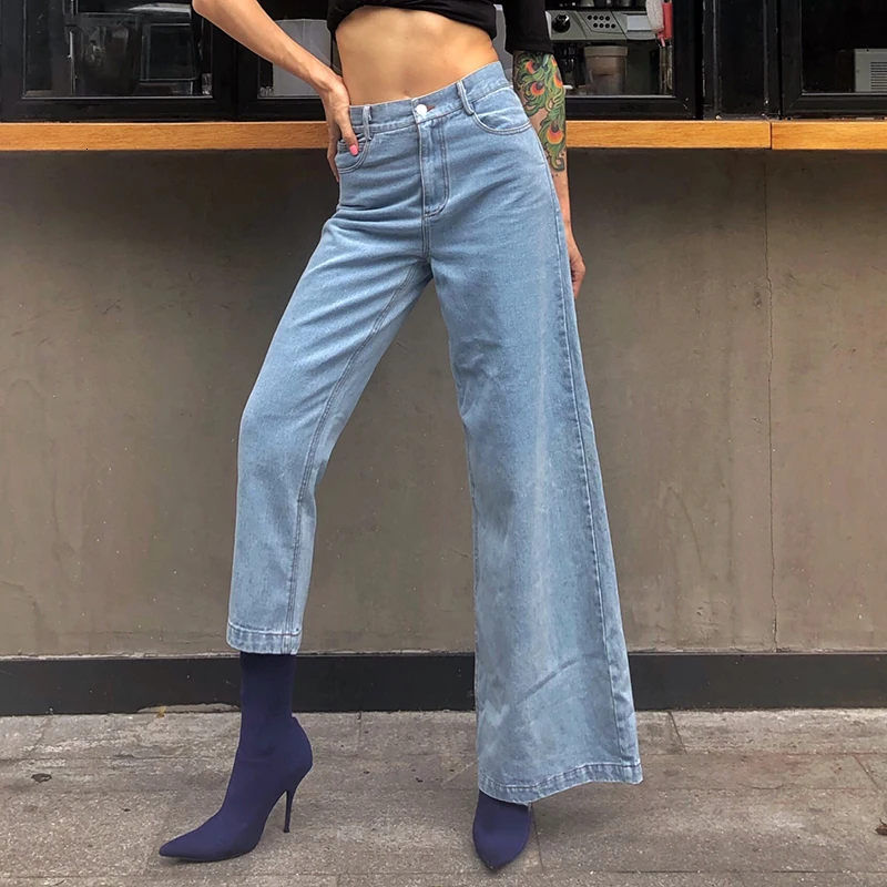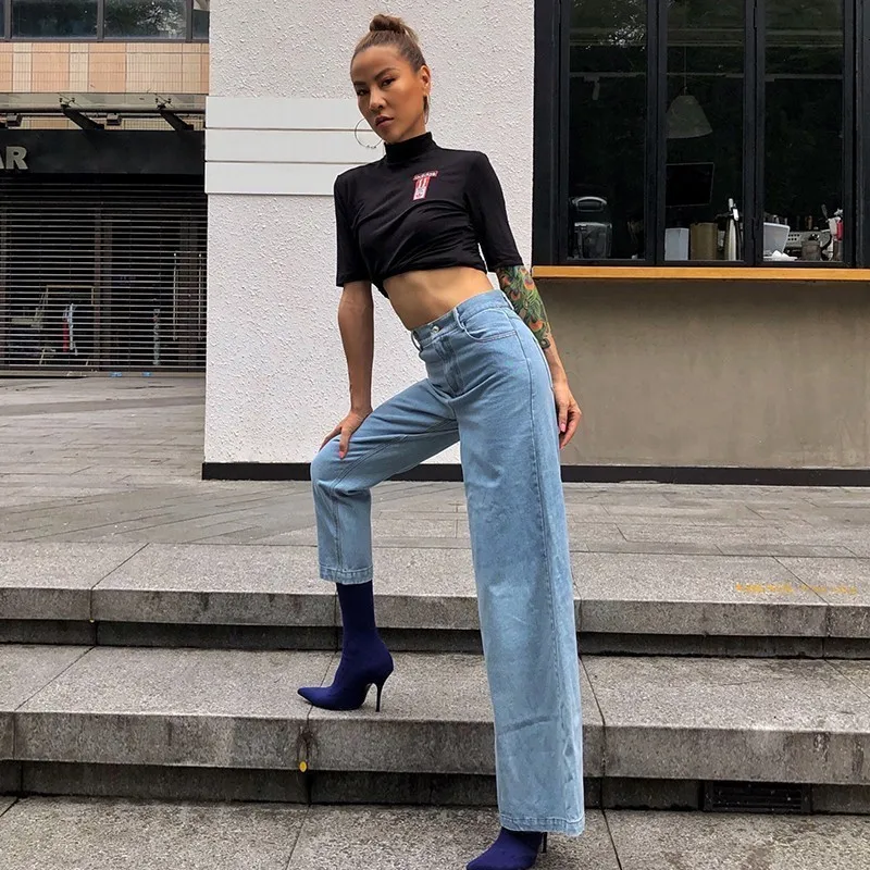 2019 осенние модные женские джинсы прямые с высокой талией для женщин Боковым