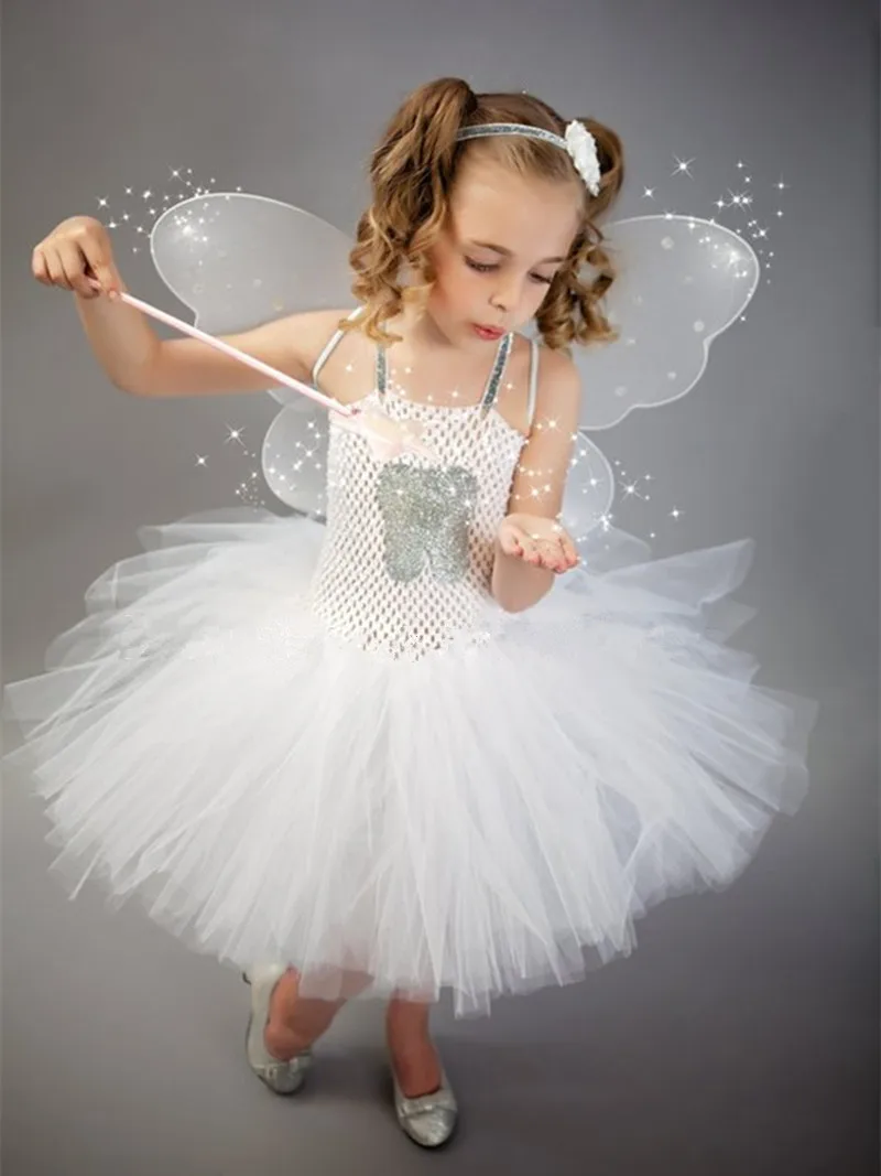 Детские костюмы на день; комплект из чистого белого платья для девочек; повязка на голову с крыльями; вечерние платья-пачки принцессы эльфа Основная информация о товаре: Ткань: нейлон + спандекс Эластичность: умеренный Толщина: умеренный Вязаный крючком топ с подкладкой, мягкий и удобный Подходит для: подиум, хост, свадьба, фотография, день рождения, фестиваль, вечерние и т. Д. Физический размер плитки, погрешность 2-5 см относится к Нормальный диапазон, не относится к проблеме качества Посылка включает в себя: 1 комплект платье-пачка