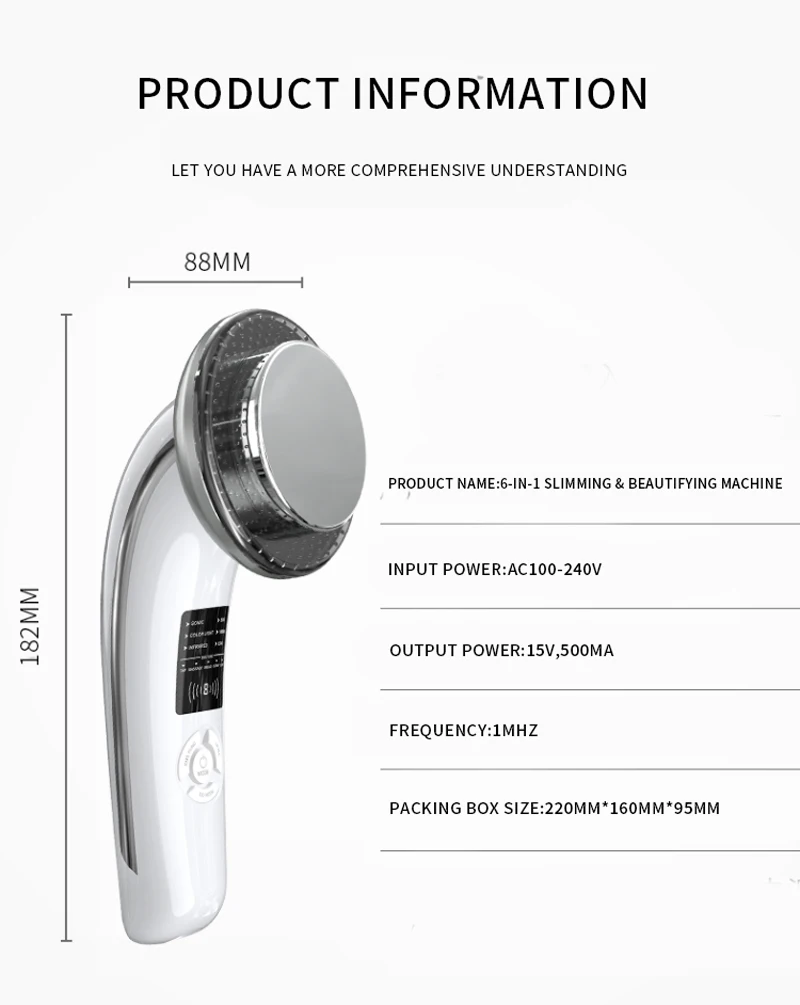 Спецификация: Материал: АБС-пластик Вход: 100-240 В Выход: 15 в 800 мА Мощность: 6 Вт Световой поток Частота звуковой волны: 1 МГц Красная длина волны: 620-630nm Синяя Длина волны: 455-470nm Тип штепсельной вилки: штепсельная вилка стандарта США, штепсельная вилка европейского стандарта, штепсельная вилка стандарта Австралии, штепсельная вилка стандарта Великобритании Цвета: белый, черный Размеры: 8*20 см/3,15 * 7.87in Тип проекта: машина для похудения Функция: ускоряет обмен веществ, улучшает процесс регенерации тканей, тонкий и тусклый, против старения, потери веса, похудения Особенности: Ультразвуковой вибрирует со скоростью 100000 раз в секунду, чтобы повысить абсорбция через кожу и активации клеток кожи. Катионы выделяют грязь и жир, чтобы сохранить кожу чистой и чистой. Отрицательные ионы питают, питают и питают кожу. EMS-прокладки имеют микротоковые стимуляторы, которые стимулируют мышцы и потребляют окружающий жир, сахар и углеводы, чтобы сохранить ваше тело стройным. Двойной светодиодный фотон-терапия сочетает в себе синий и красный светодиодный свет для разбавления тусклости, удаления, устранения морщин и восстановления упругости кожи. Электродные перчатки из серебристого волокна формируют тело и улучшают кровообращение. Три уровня и пять режимов регулируются. Легко управлять и удобно носить. Используйте гель для кожи вместе с тонким гелем. Подходит не только для формирования лица, но и для похудения. 6 функция введение: 1. Функция ультразвукового массажа для похудения Ультразвук может повысить проницаемость клеточных мембран, изменить анаэробное состояние клеток, повысить поглощающую способность клеток и активировать энергию клеток. 2. Светодиодный функция обновления кожи Синий светильник: 455-470нм, синий светильник успокаивает и защищает от воздействия, может регулировать секрецию кожного сала. Кроме того, Blu-Ray может также улучшить провисание кожи для укрепления и укрепления. Красный светильник: 620-630nm, красный светильник стимулирует фибробласты в дерме, ускоряет кровообращение, повышает эластичность кожи и устраняет морщины. 3. EMS Гладкий канал. EMS-это физиотерапия, которая хорошо работает для организма. EMS может стимулировать акупунктурные точки и активировать энергию для регулирования организма. 4. Волшебные перчатки массируют и поддерживают функции тела Электродные перчатки улучшают циркуляцию и поглощение клеток. В то же время, он может заботиться о руках. Таким образом, он может тонкий вниз и защитить ваше тело в то же время. 5. Функция очистки положительных ионов Большинство загрязнений, масляных пятен и косметических остатков содержат отрицательные ионы, поэтому положительные ионы массажа поглощают остатки и глубоко очищают кожу. 6. Отрицательные ионы, ведущее питание Большинство питательных веществ в продуктах ежедневного ухода доходит только до эпидермиса. Отрицательные ионы в машине «Шесть в одном» могут сочетаться с положительными ионами клеток кожи для переноса питательных веществ на кожу, тем самым достигая глубокого пищевого эффекта. Посылка включает в себя: 1 * хост 1 * очки 1 * on EMS-прокладки 1 * электродный Линейный 1 * перчатки с двойным EMS 1 * адаптер 1 * Руководство пользователя 1 коробка Примечание: 1. Если вы чувствуете себя плохо, прекратите использовать его. 2. Не используйте это устройство для пациентов, беременных жен