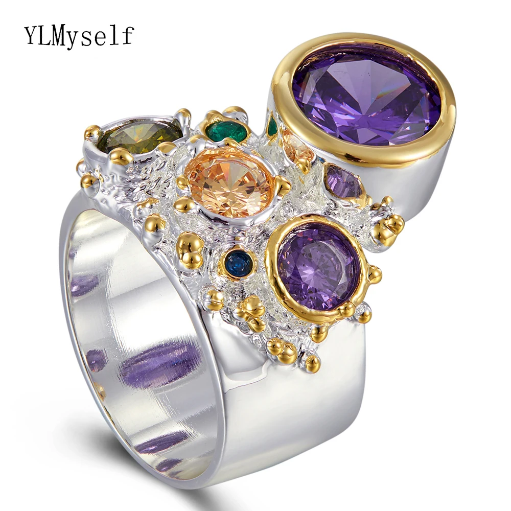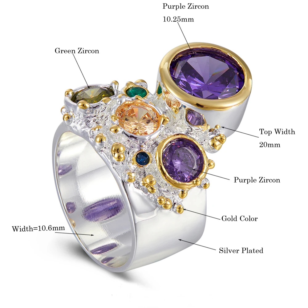 Изготовлен из окружающей среды металлической меди, серебро и золото 2 тона покрытие, вымощенный набор с фиолетовым разноцветные кубический цирконий камень. -- Высокое качество -Быстрая доставка -- Хорошее ювелирное изделие ручной работы -- Не вызывает аллергии, не содержит никель