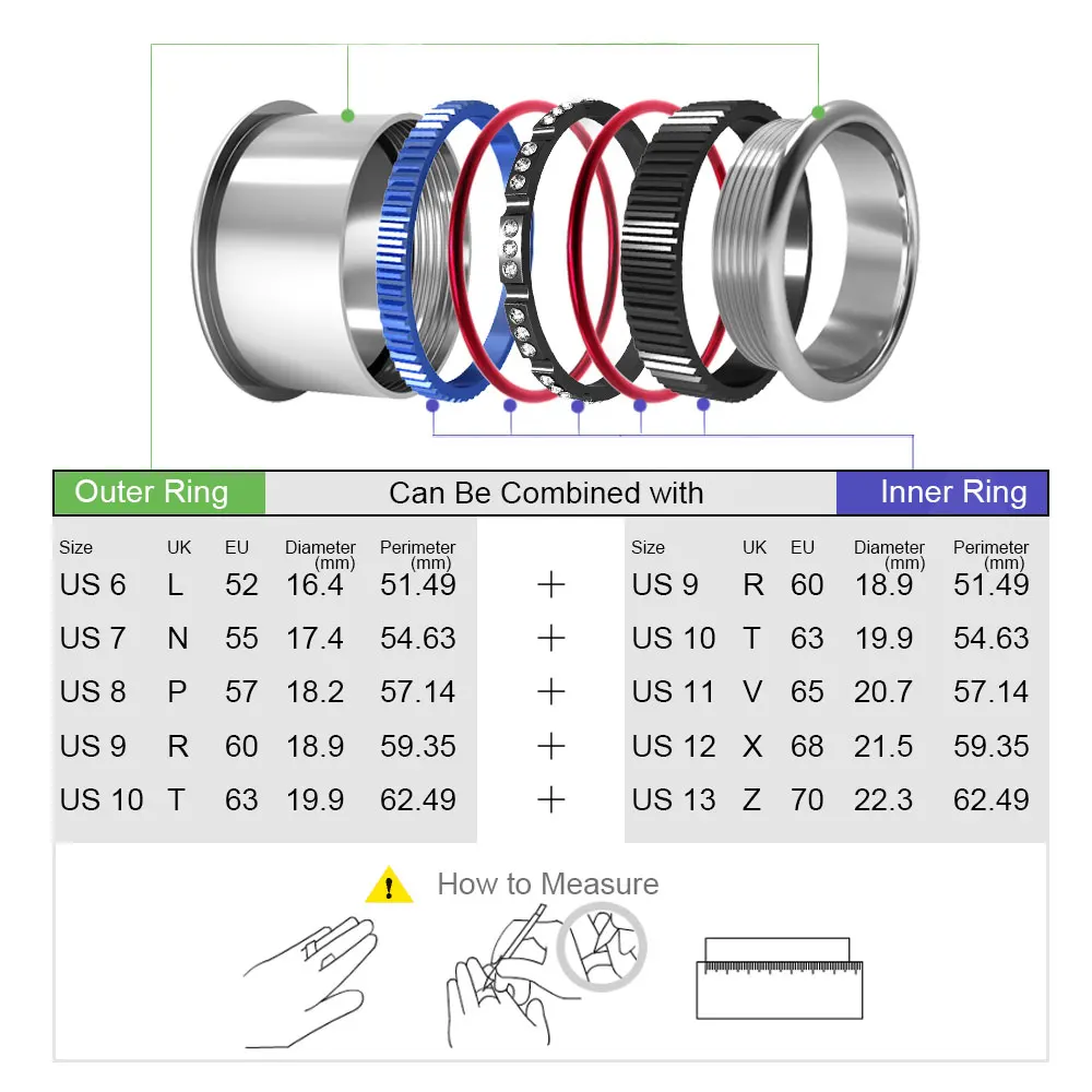 Floya Boho, кольца, красные, черные, слои, нержавеющая сталь, обручальное кольцо, Femme, массивное ювелирное изделие, подарок для девочек, бесплатная доставка Для комбинированного кольца в качестве основы должен быть выбран вариант внешнего кольца. Просто Отвинтите внешнее кольцо и соедините с широким спектром внутреннего кольца. Сделайте заявление с нашими привлекательными новыми заполняющими кольцами и специальным узором заполняющих колец. Добавьте цвет в любое сочетание! Просто скрутите декоративные элементы друг в друга, и ювелирные изделия соединяются вместе, чтобы создать совершенно новый образ! Расширьте комплект верхней части с новыми верхними частями, новым базовым кольцом верхней части и подходящими серьгами-кольцами. Выберите дизайн и измените внешний вид ваших украшений за один шаг. Обратите внимание на следующую особенность при заказе комбинации внешних и внутренних колец: для того, чтобы внутреннее кольцо подходило к внешнему кольцу, внутреннее кольцо должно быть выбрано соответственно больше. Чтобы узнать правильный размер кольца, Вам потребуется только нить или лист бумаги. Оберните нить или бумагу вокруг части пальца, где вы хотели бы носить кольцо, а затем Измерьте его длину. Длина, измеренная в миллиметрах, будет внутренней окружностью кольца. Ваш вкус, ваше сочетание, Создайте свое кольцо!