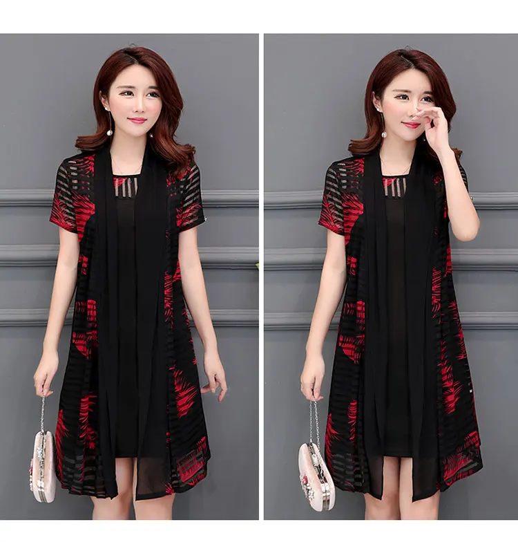 Корейское винтажное платье из двух частей с принтом, летнее платье, офисная одежда, женское элегантное роскошное облегающее Платье До Колена