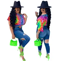 Новинка 2019, женский летний комбинезон с открытыми плечами и v-образным вырезом, с широкой талией, с принтом в виде галстука, вечерние комбинезоны K9354