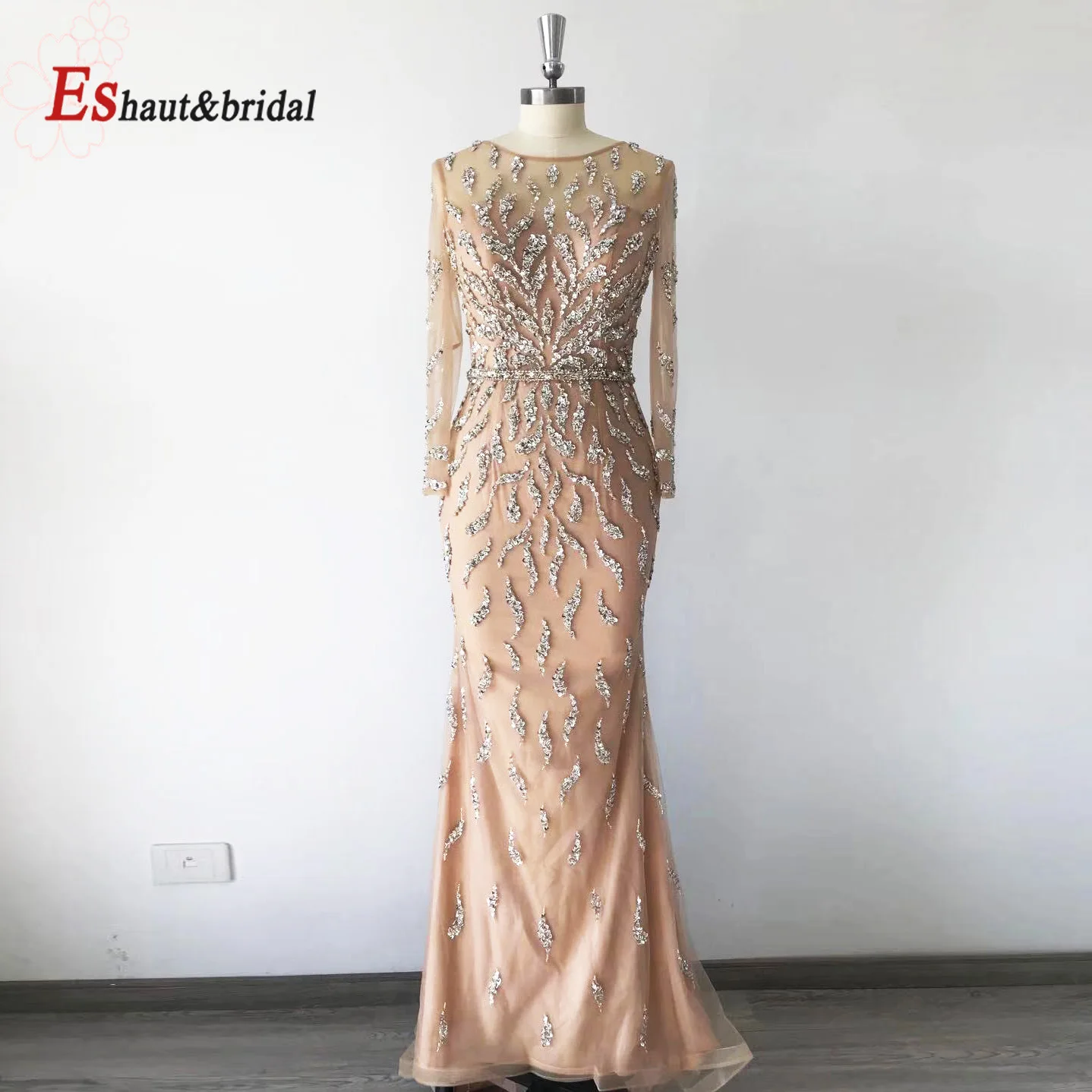 Женское вечернее платье с длинным рукавом и бусинами|Вечерние платья| |