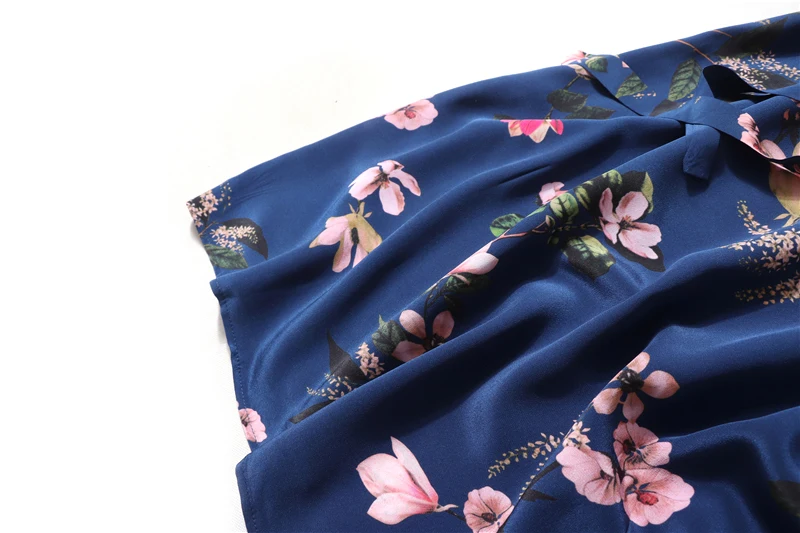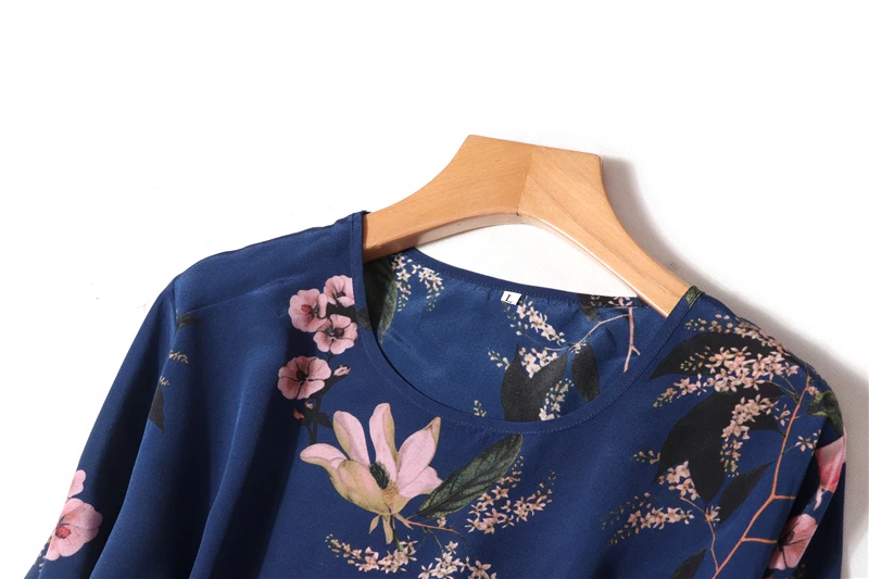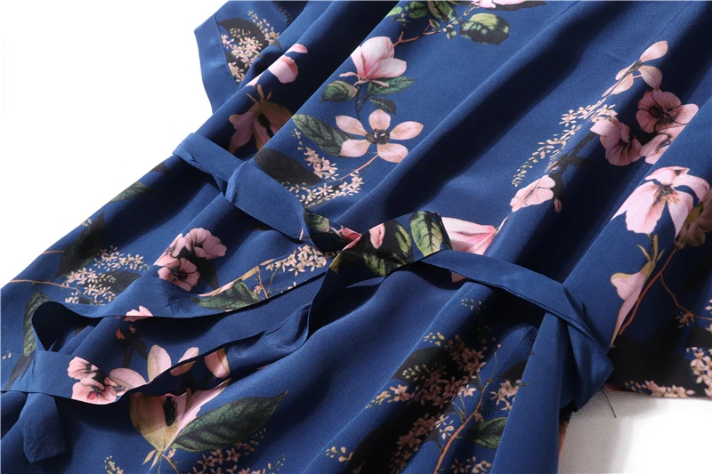 Женское шелковое платье с круглым вырезом размера плюс, летнее винтажное элегантное платье из натурального шелка с цветочным принтом, повседневное длинное праздничное платье из натурального шелка