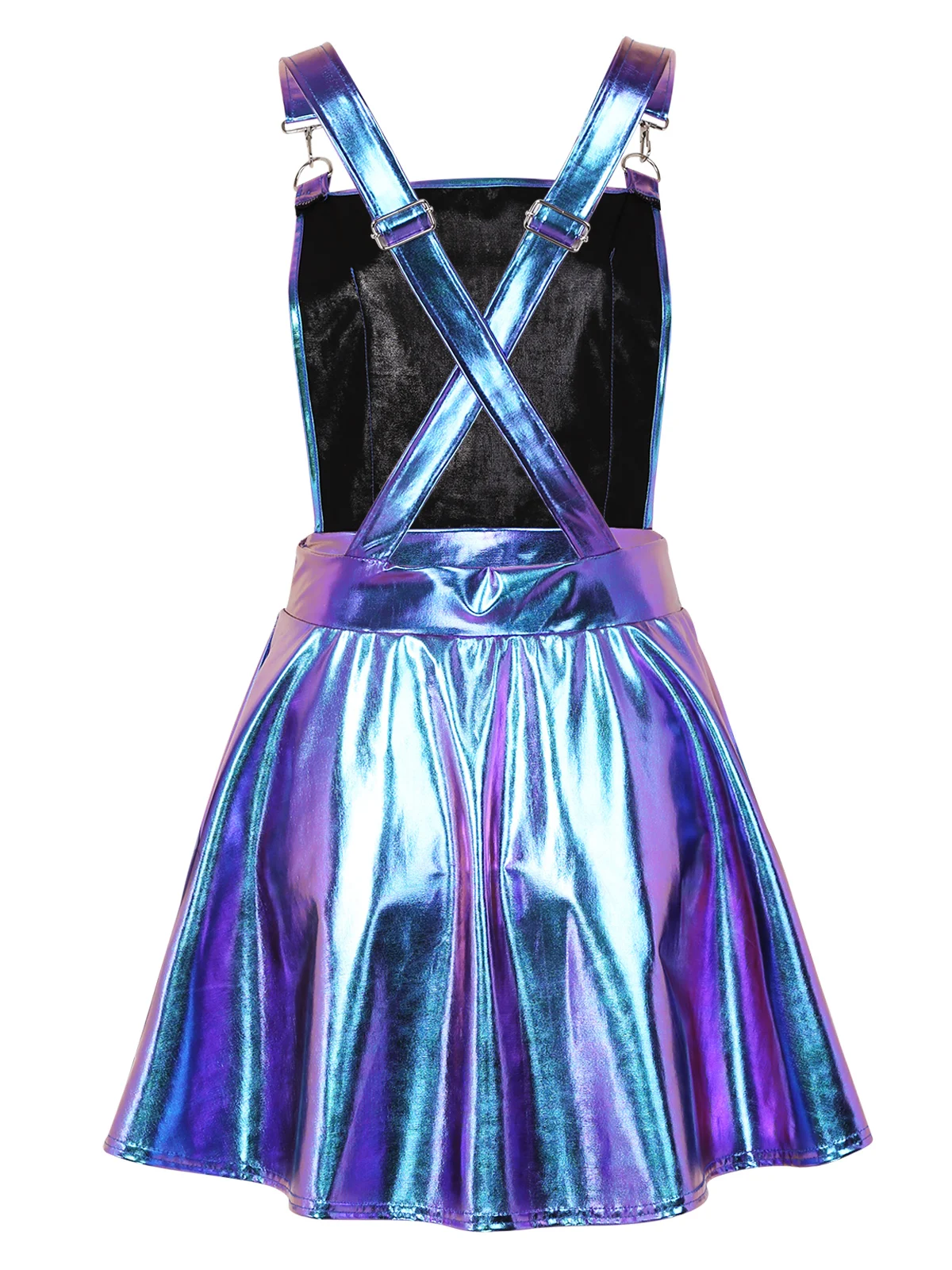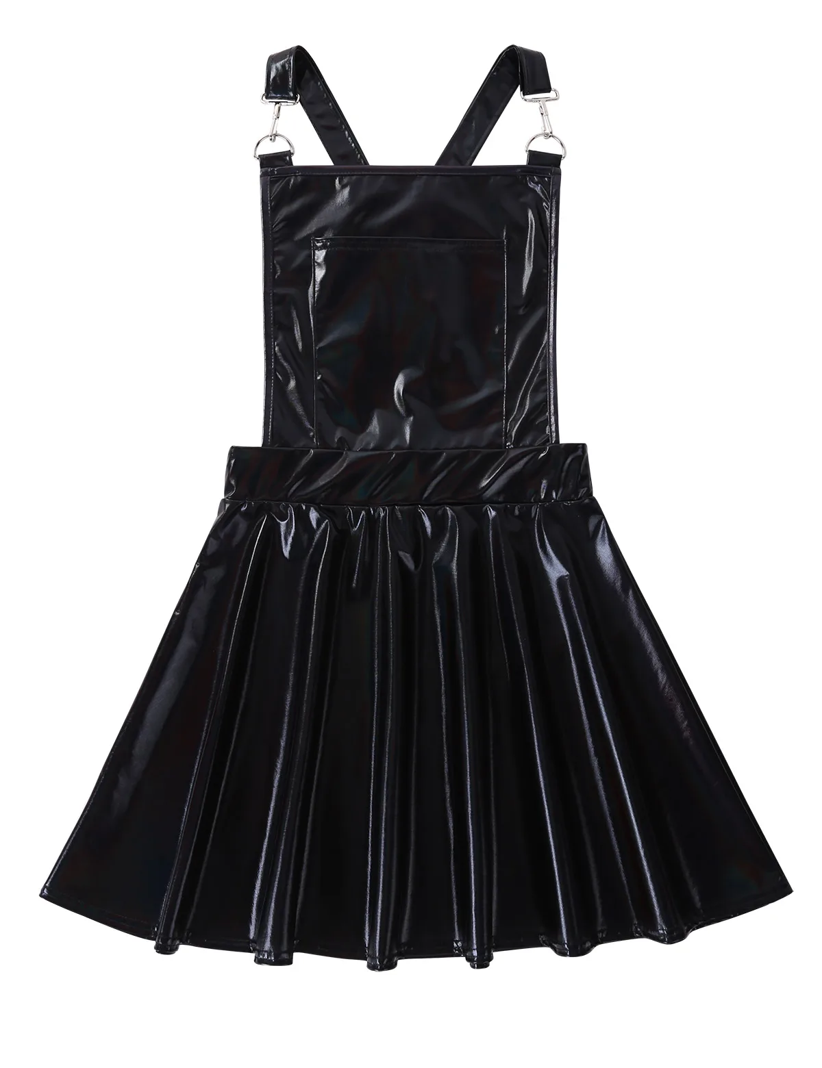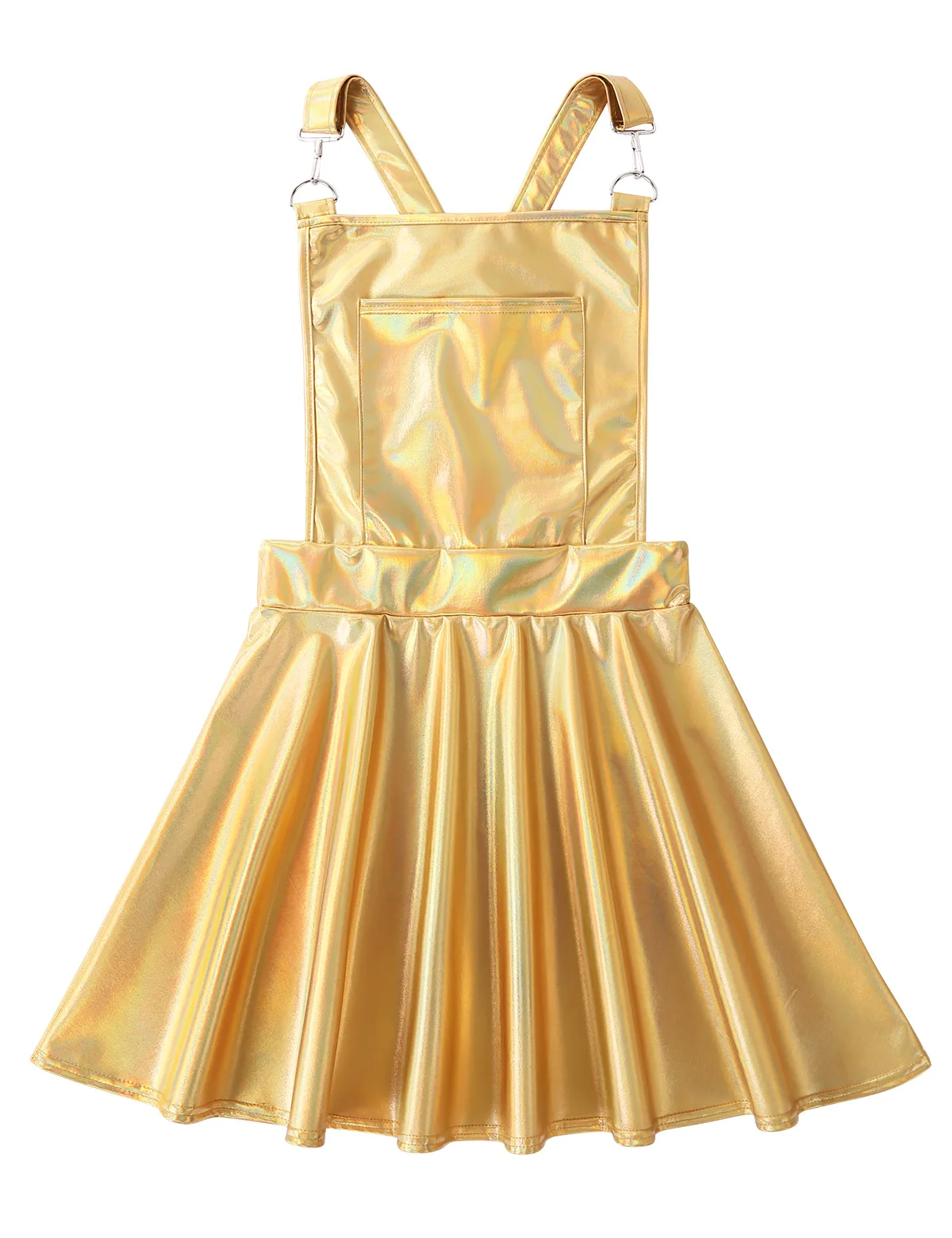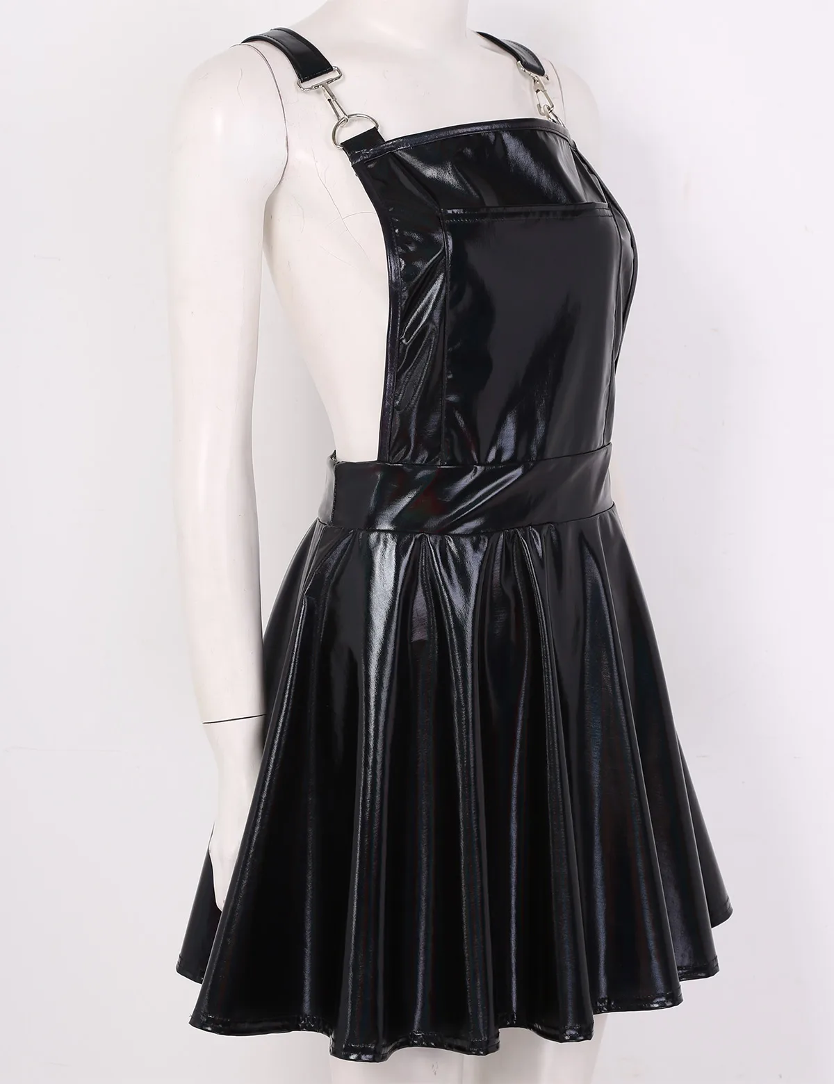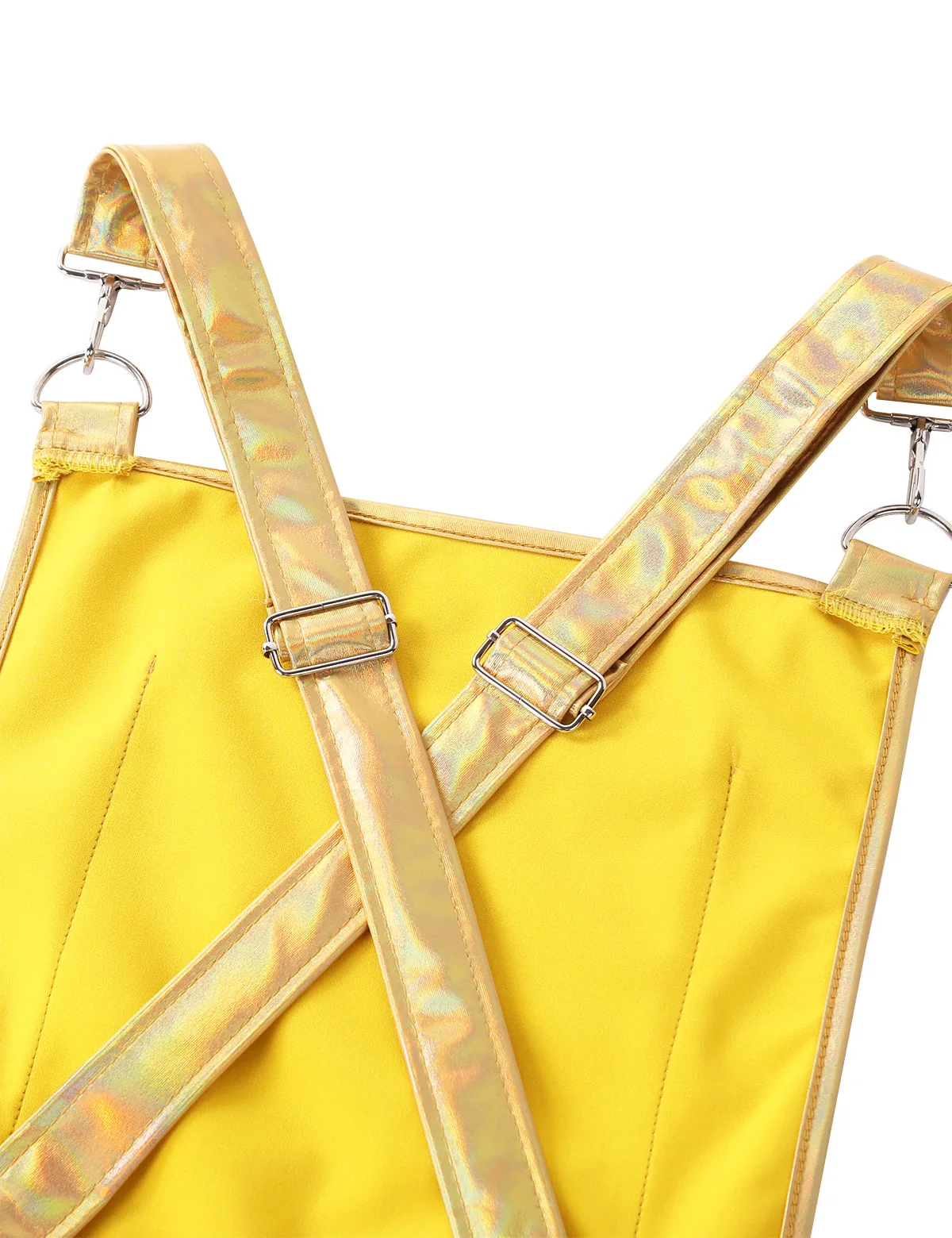 Женский Блестящий металлический комбинезон на лямках, платье-сарафан, юбка-мини подвязки, надежная застежка