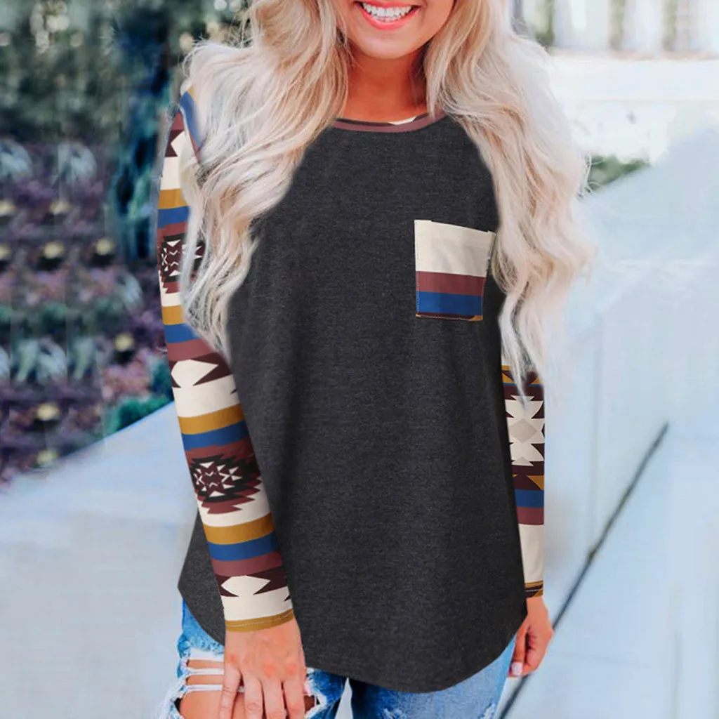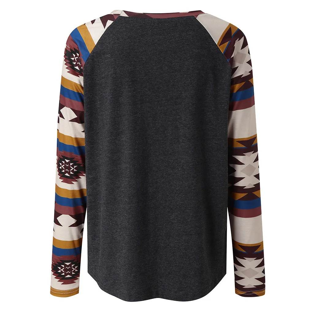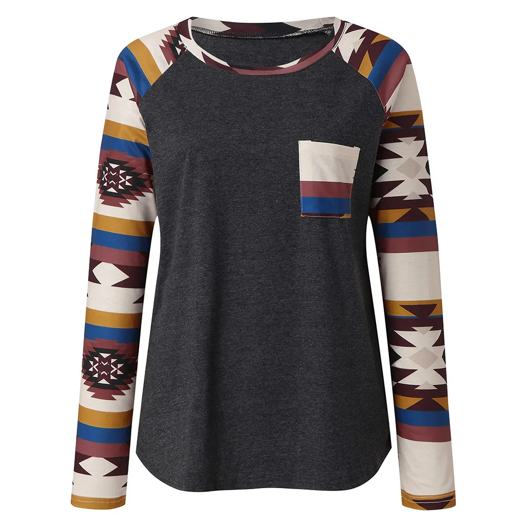 Женская Повседневная Свободная блузка с круглым вырезом и принтом в стиле пэчворк