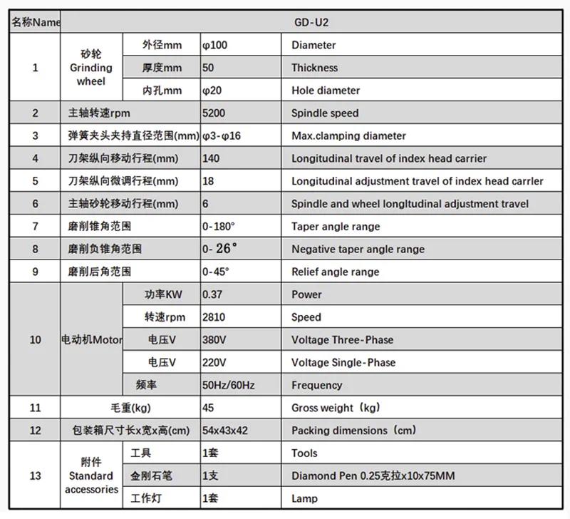 Диапазон угла шлифования отрицательного конуса: о ° ~ 52 °