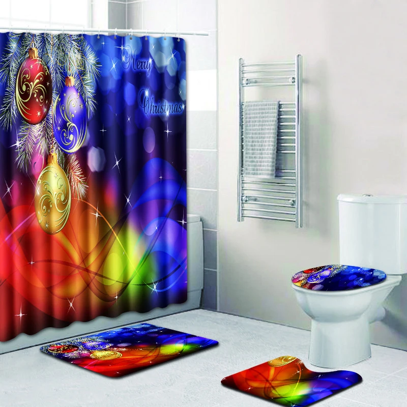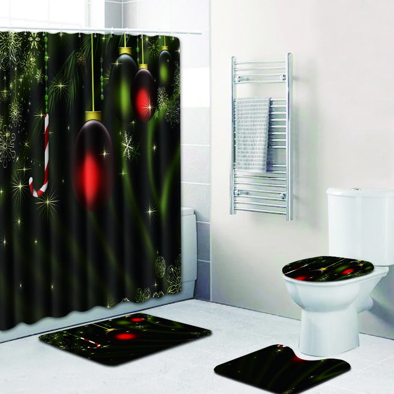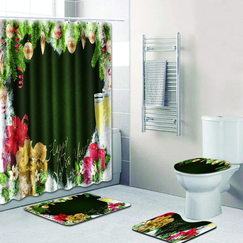 Рождественская занавеска, водонепроницаемая занавеска для душа, 4 шт., набор ковриков для ванной комнаты, нескользящий коврик для унитаза, коврик для сиденья, впитывающий коврик для ног