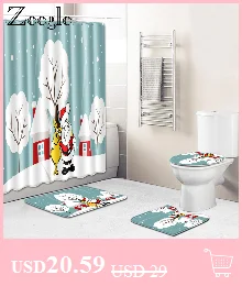 Рождественский набор ковриков для ванной Zeegle, 4 шт., занавеска для душа, чехол для унитаза, нескользящий коврик для ванной, коврик для душа, абсорбирующий коврик для ног