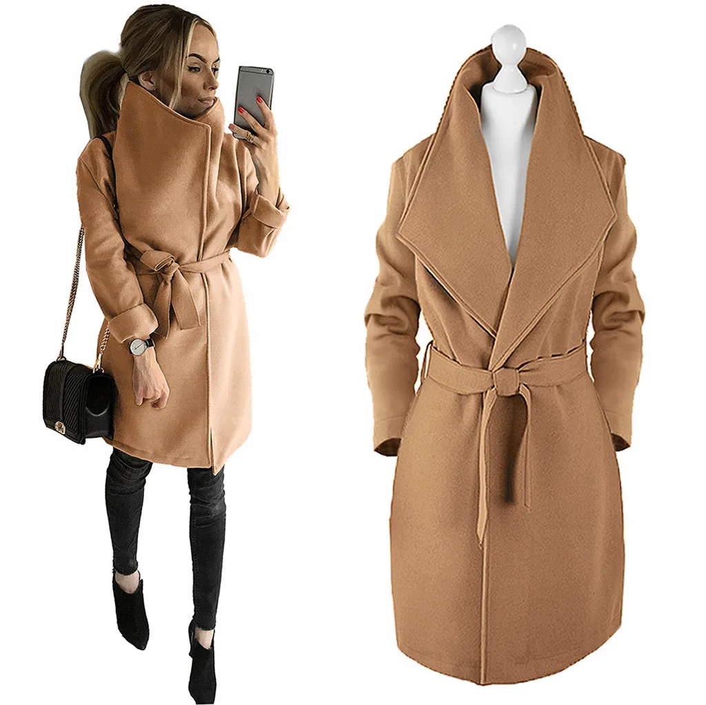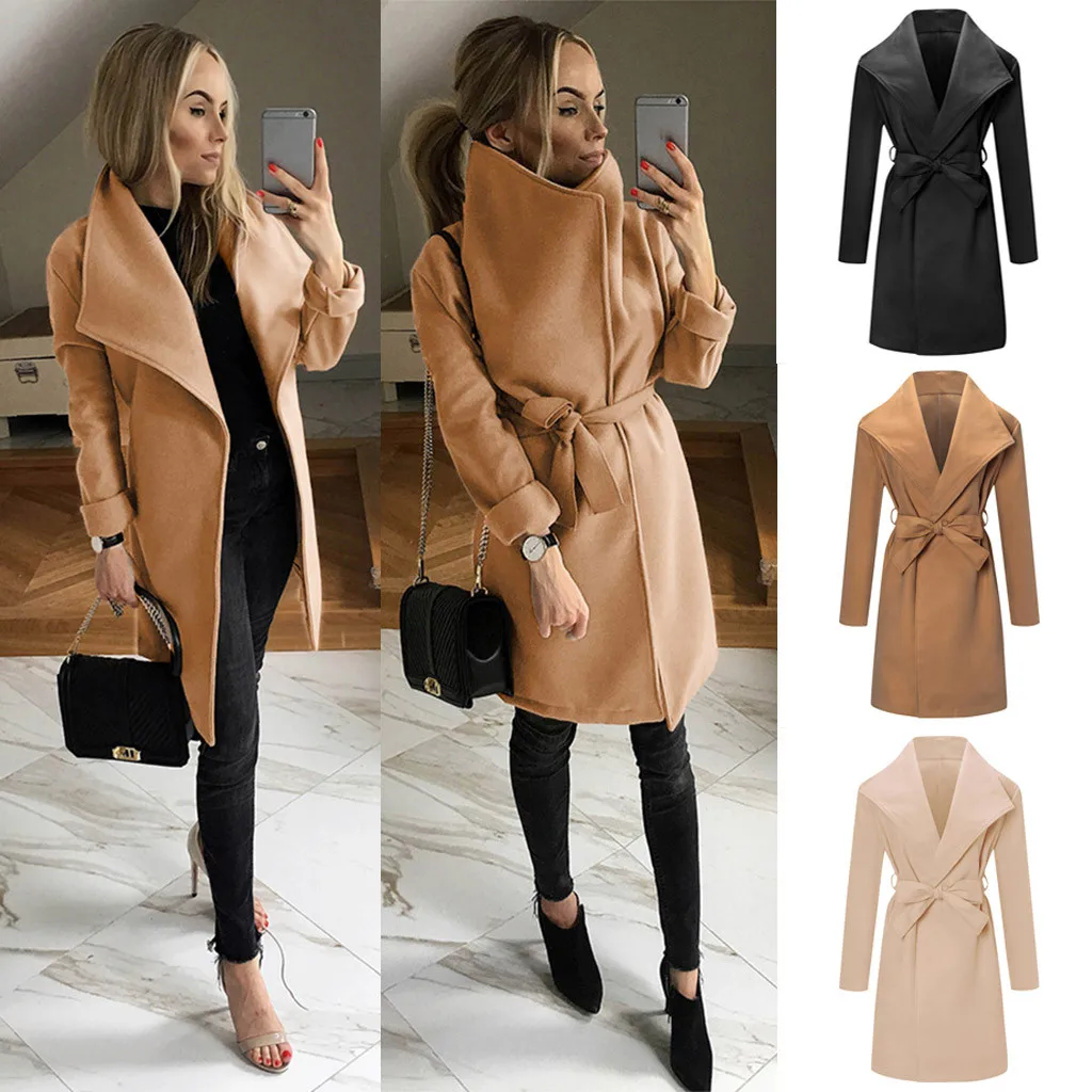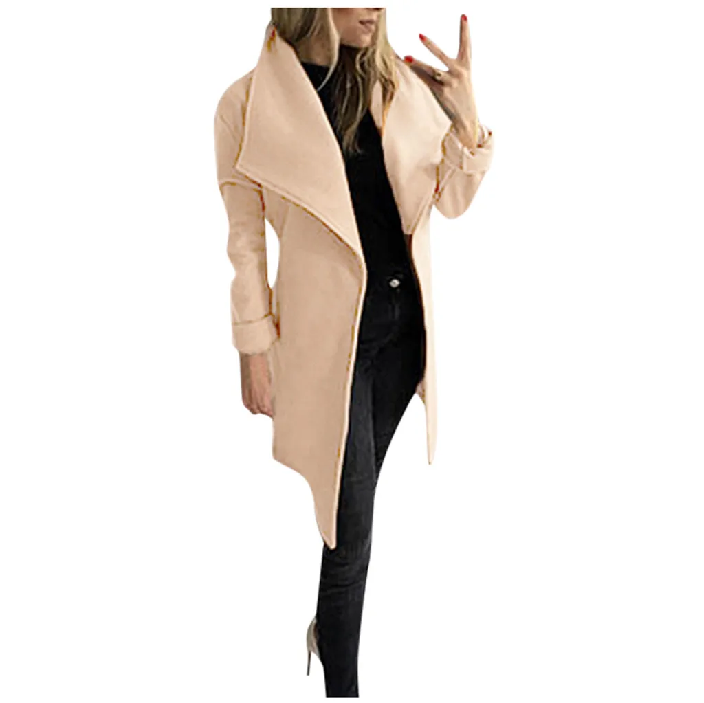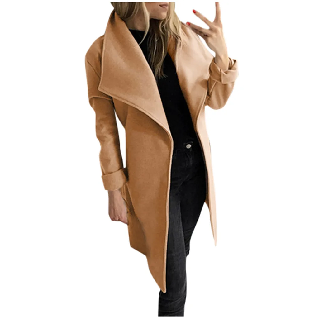 Женская зимняя открытая накидка повседневное пальто с длинным рукавом Блузка кимоно кардиган