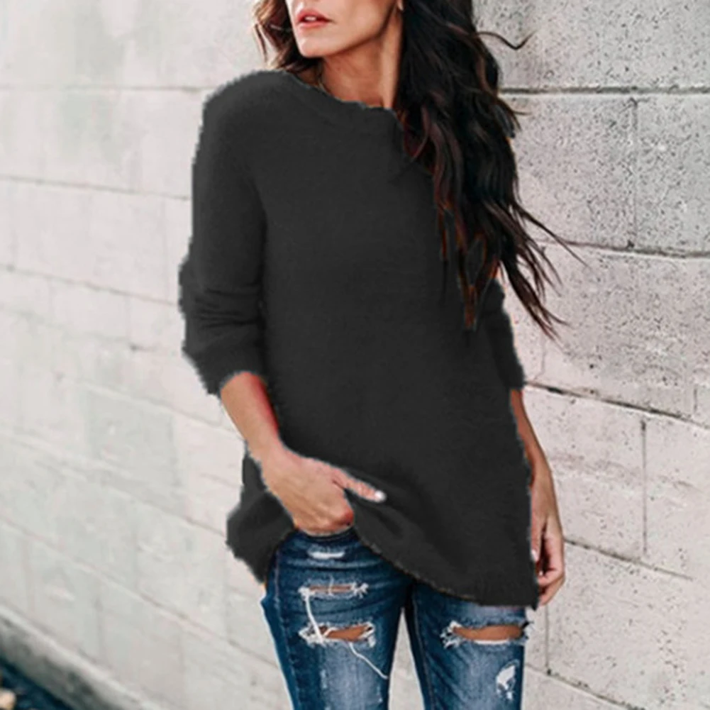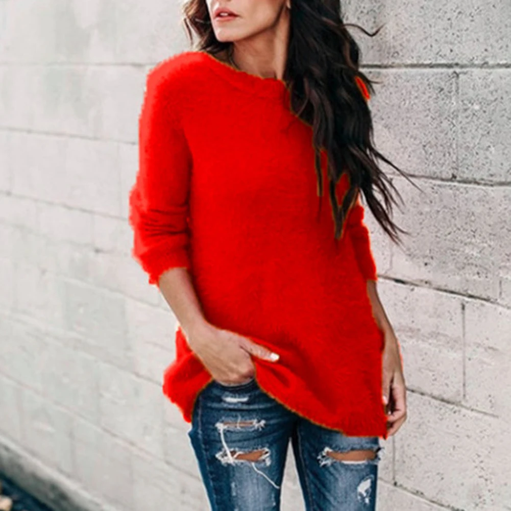 Повседневный Женский вязаный пуловер с круглым вырезом и длинным рукавом на осень и зиму