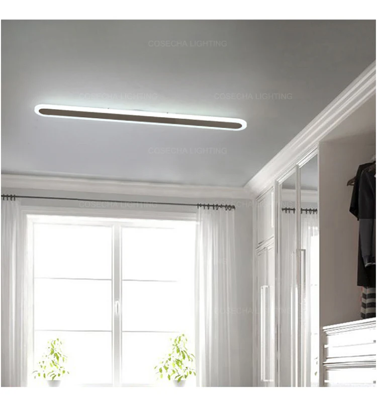 Современный белый светодиодный потолочный светильник с длинным светодиодный потолочная лампа для офиса Балкон Ванная комната ультра-тонкий акриловый Железный Утопленный монтаж светильник