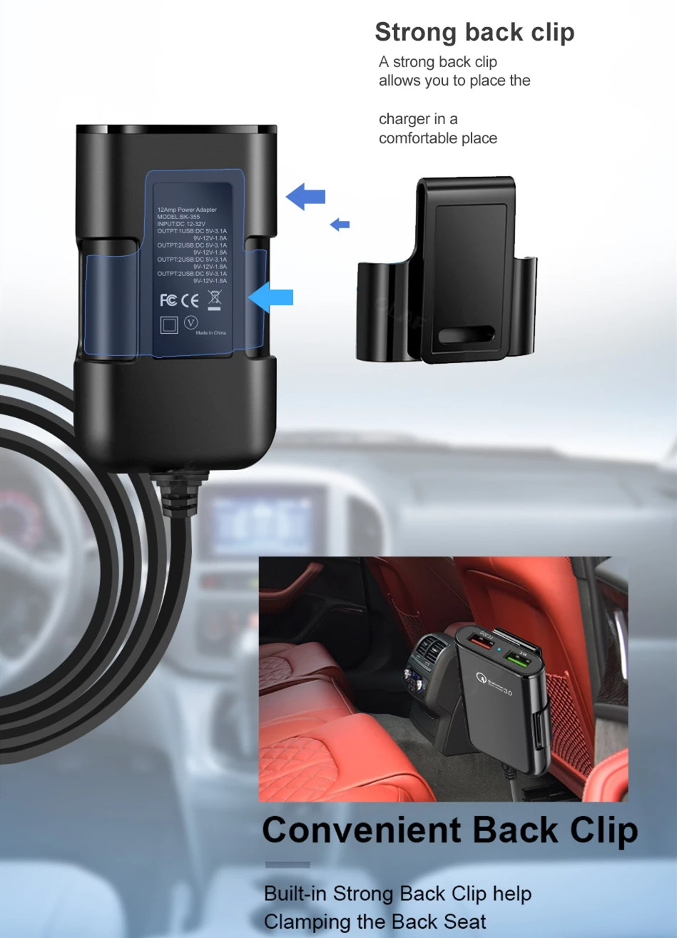 Приходят с 1,7 м/5,6 "длинный шнур, удобно для людей сидеть на заднем сиденье, чтобы зарядить и использовать их для телефона в одно и то же время во время вождения.