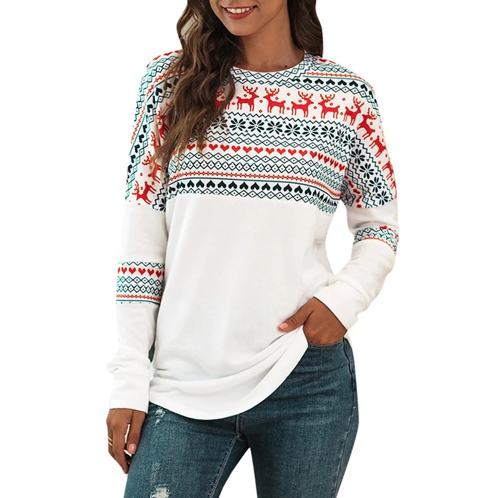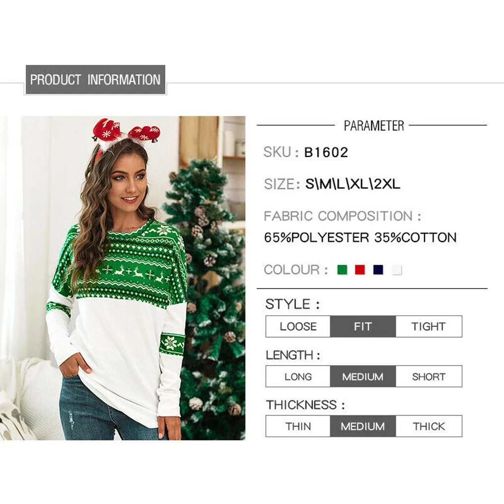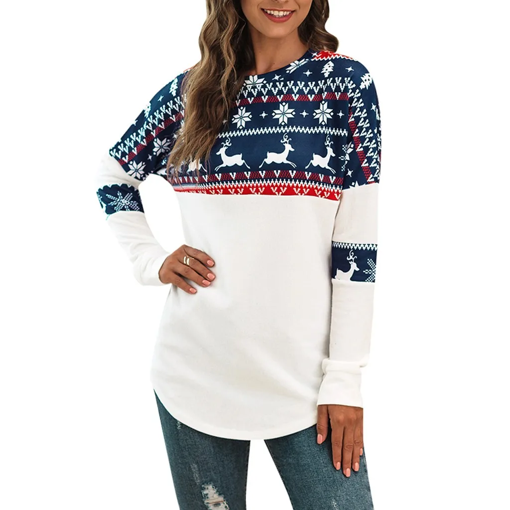 Womens Christmas Blouse Ladies Long Sleeve Patching Shirt Casual Sweatshirt Tops Loose Sport Fashion Tops 2019 For All season