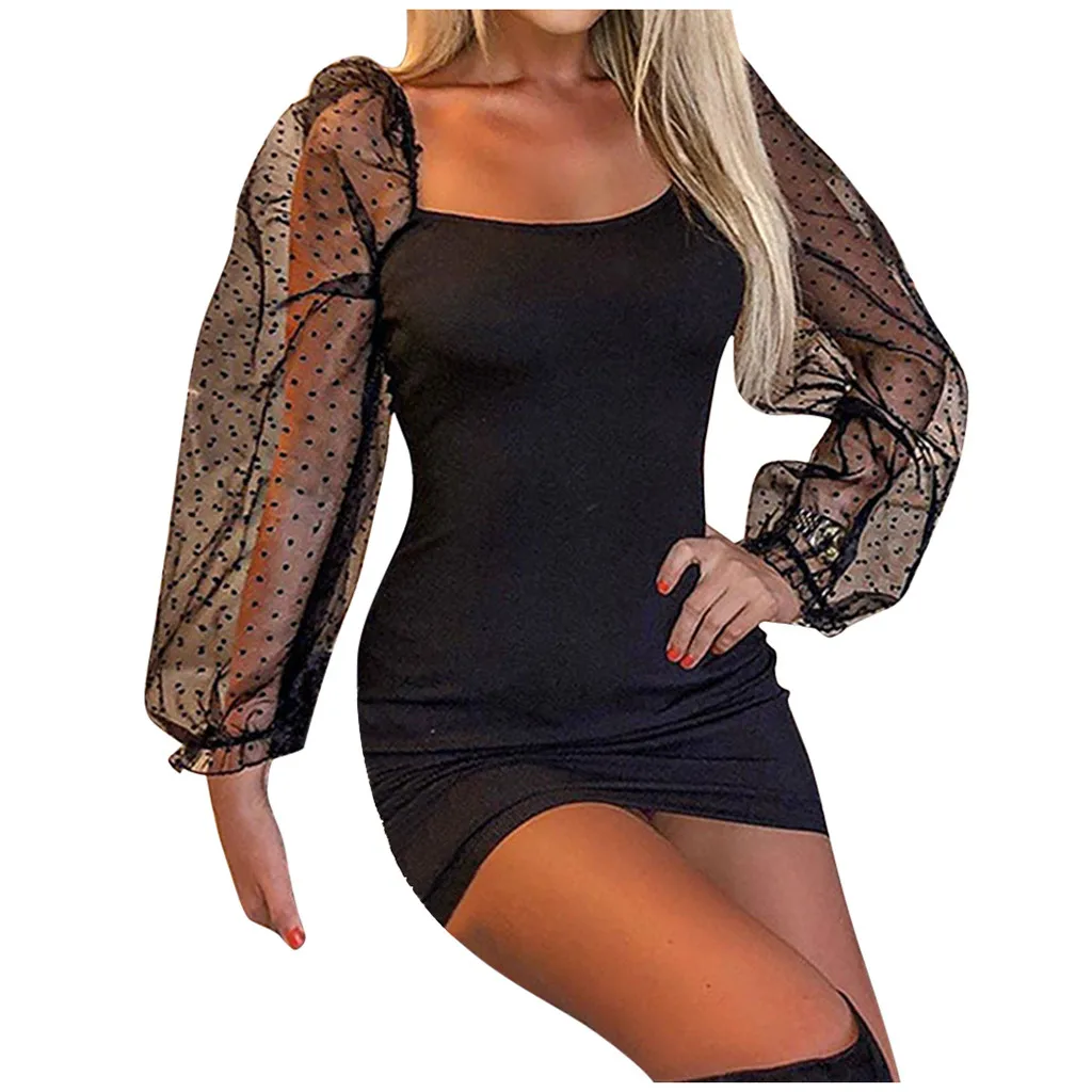 1. Модное Повседневное платье с квадратным вырезом, сетчатыми рукавами-пузырьками, открытой спиной, однотонное мини-платье.