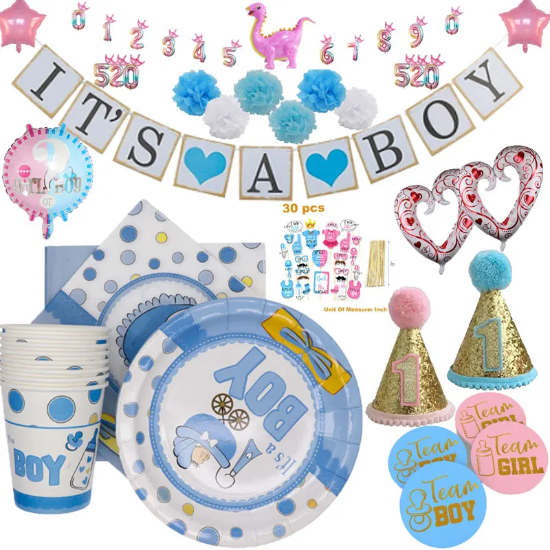 Новый Пол секретный коробки Детские вечерние комплект мальчик наклейка для воздушного шара plug hat серии день рождения поставки