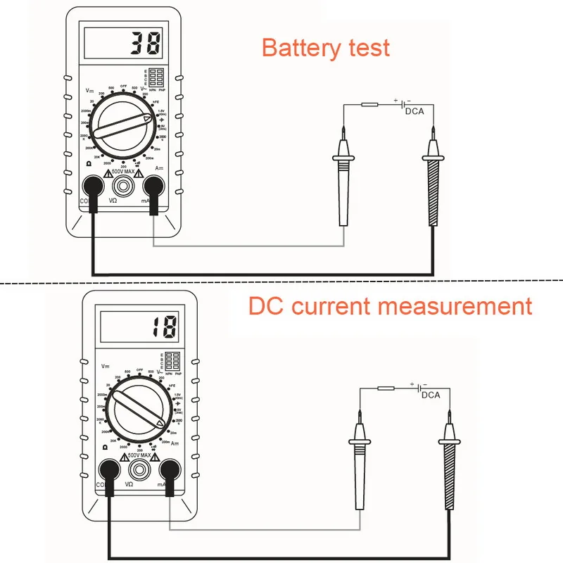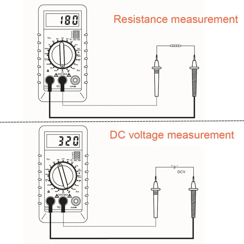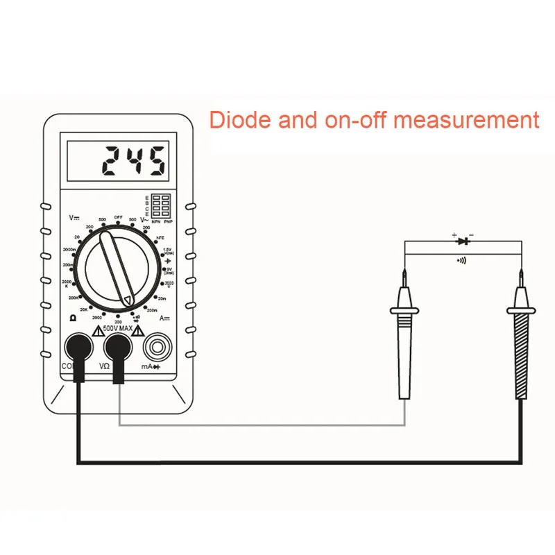 -- Многофункциональность: multimter может измерять напряжение переменного/постоянного тока, постоянный ток, сопротивление, Диод и аудио.