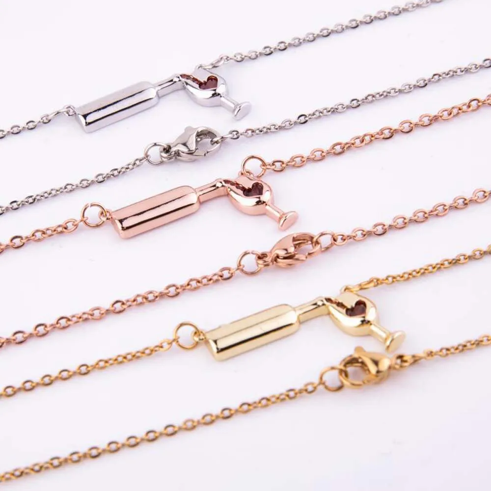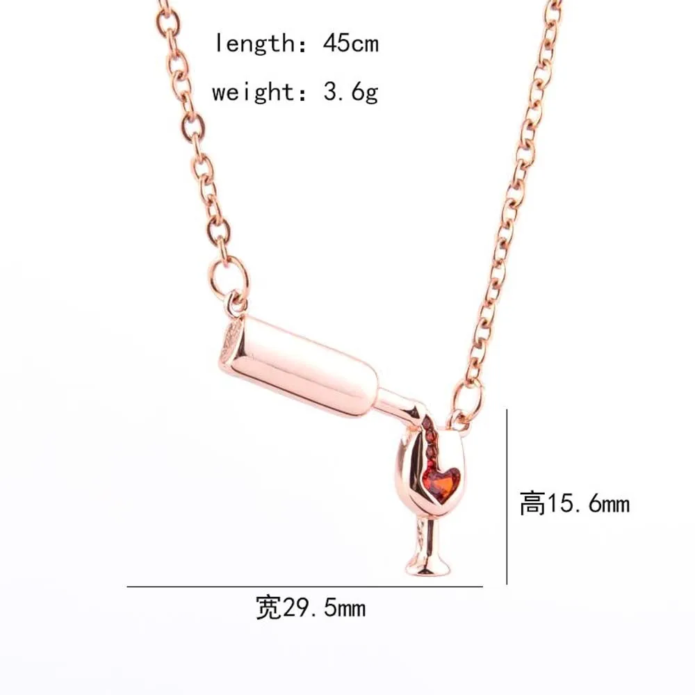 Вес: 5 г Длина: 45 см + 5 см Форма: бутылка Красного вина Цвет: розовое золото серебряный цвет Посылка включает в себя: 1 ожерелье
