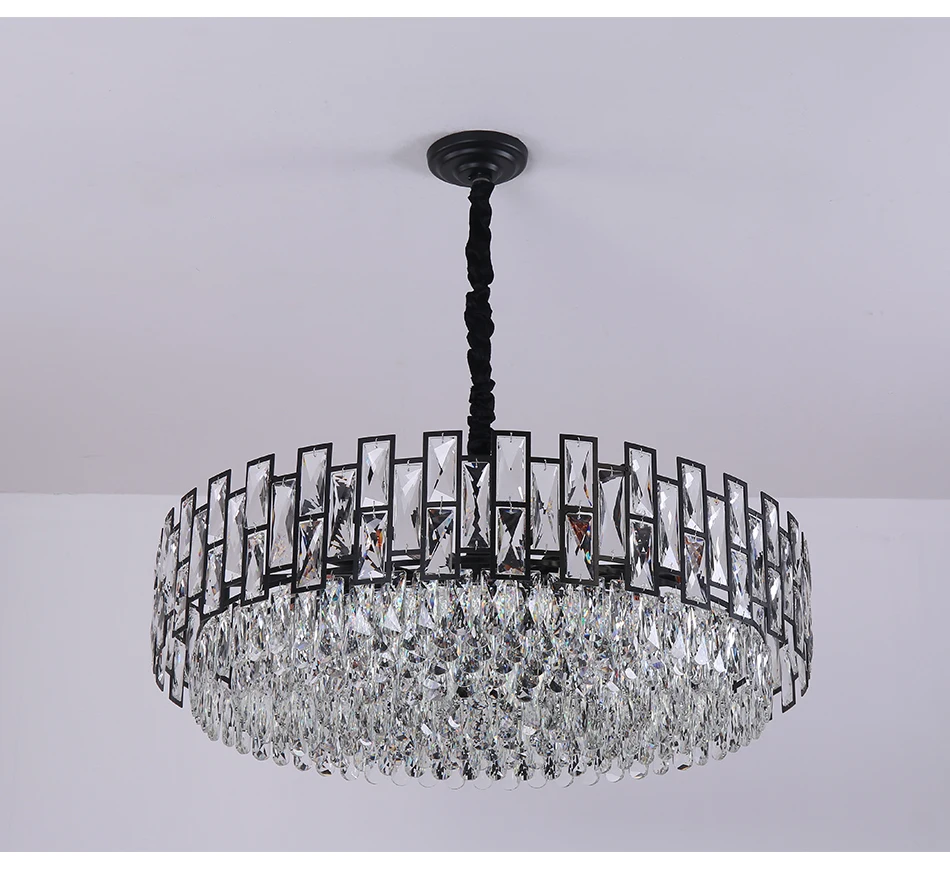 Современная черная хрустальная люстра, круглый светодиодный подвесной светильник для гостиной, спальни, домашний светильник, светильник, роскошный светильник для помещений
