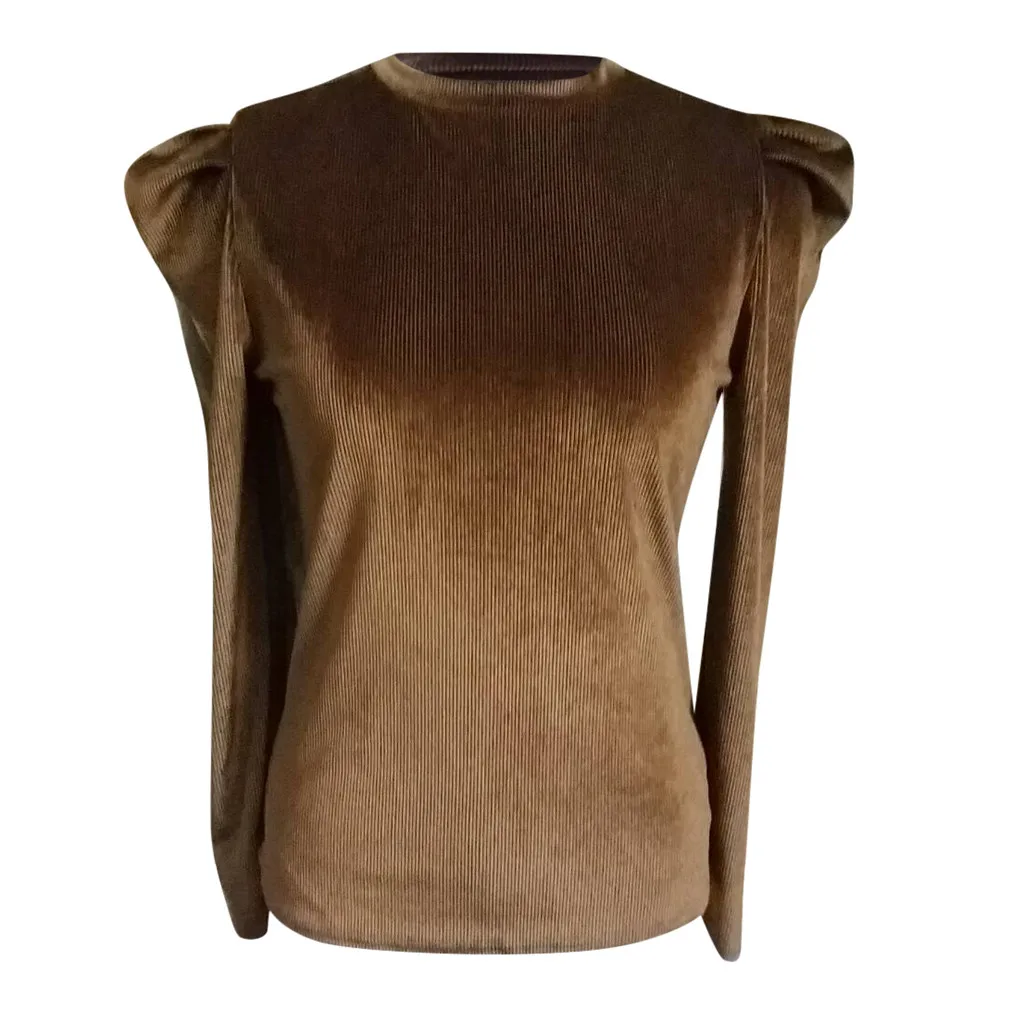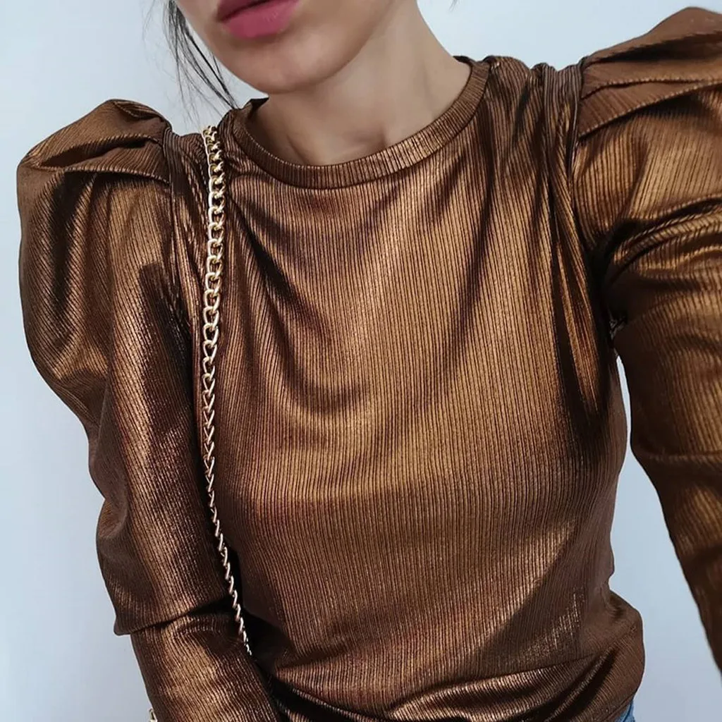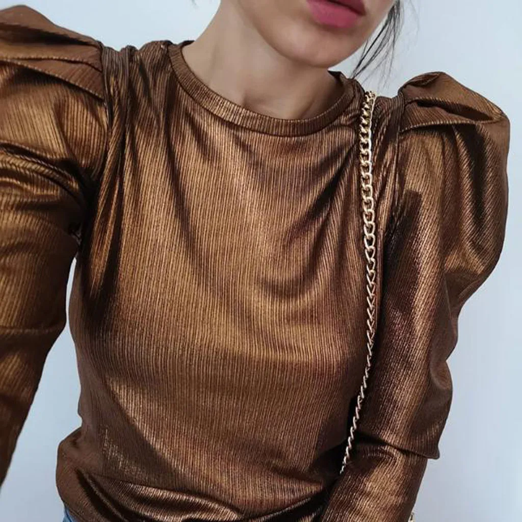Женские Длинные Топы с пышными рукавами, Женская Повседневная Свободная футболка с круглым вырезом, блузка, джемпер
