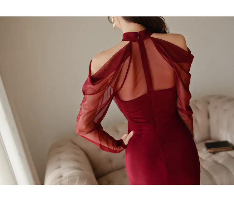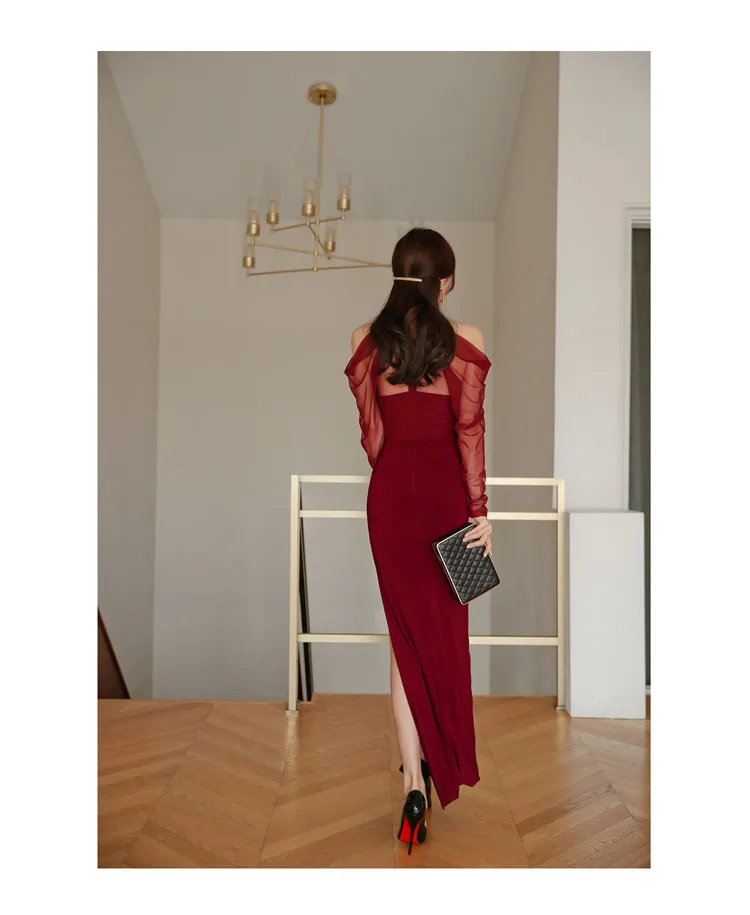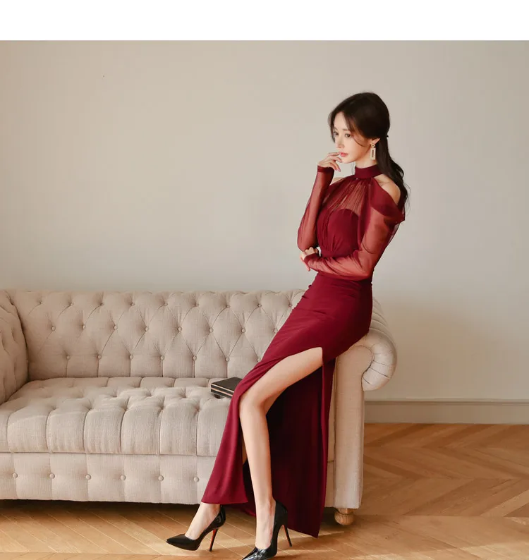 Женское вечернее платье CINESSD, Красное Кружевное платье без бретелек с открытыми плечами, вечерние платья на Пасху, 2019
