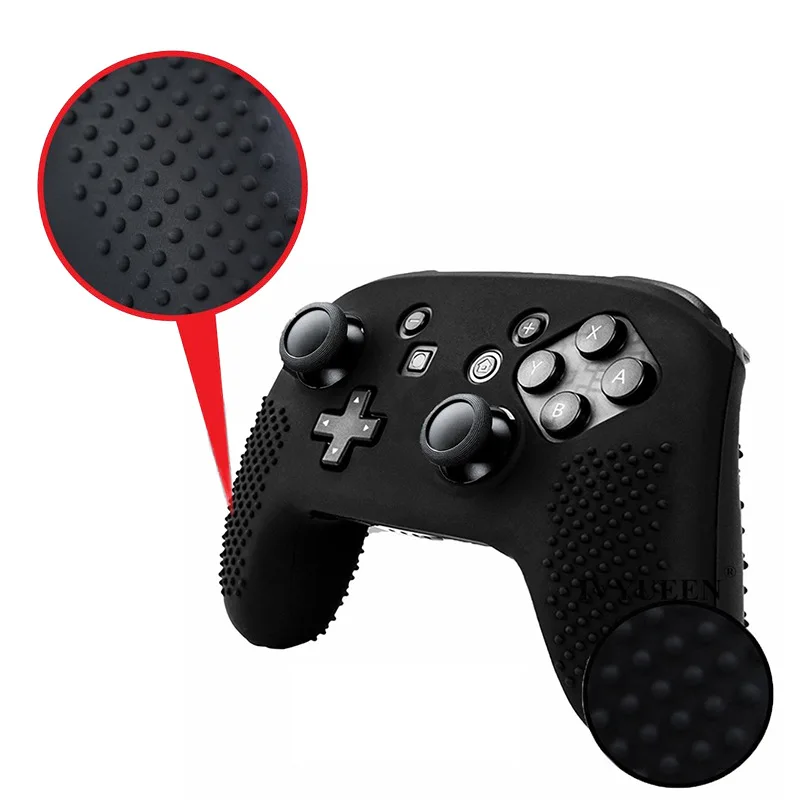 Описание товара: Высококачественный силиконовый чехол-накладка, идеально подходит для контроллеров Nintendo Switch Pro Специально разработанная форма поверхности Шипованная и высококачественный материал обеспечивает улучшенное ощущение сцепления во время игры, предотвращает скольжение Защищает ваш контроллер от ударов, царапин, пыли и пота Посылка: Силиконовый чехол-1 шт. для контроллера Nintendo Switch Pro