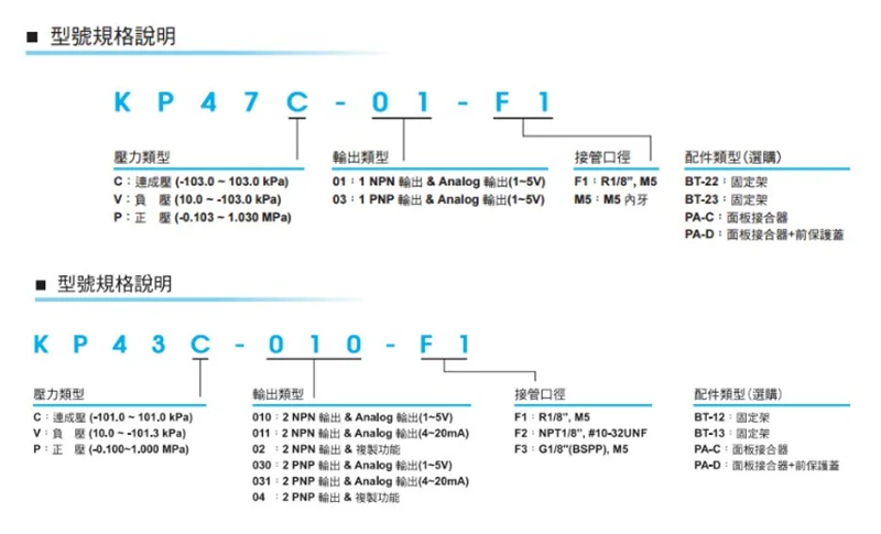 Положительное давление: KP43P-010-F1 Диапазон давления:-0,100 ~ 1,000мпа(Для положительного давления)2.Grouppnpn1 Аналоговое количество (1 ~ 5 В)(ReplacementKP42P-02-F1)