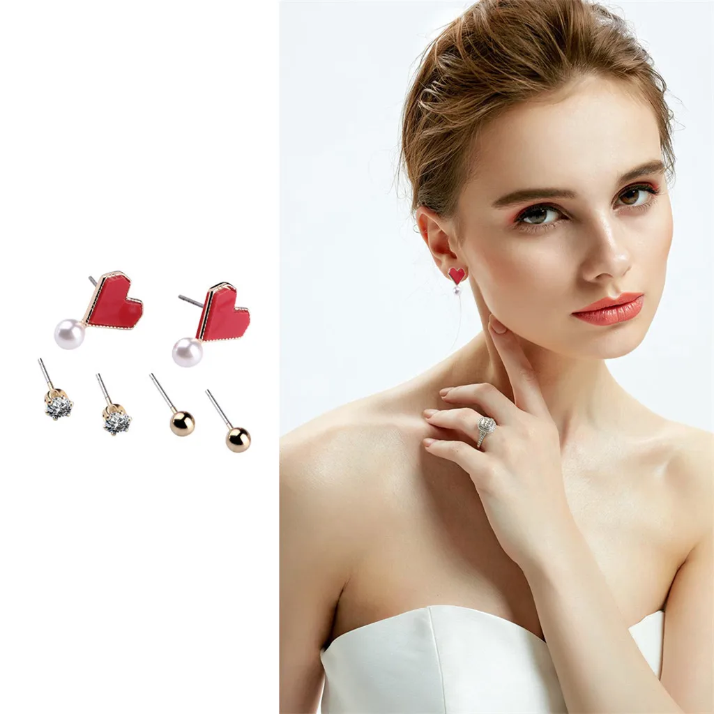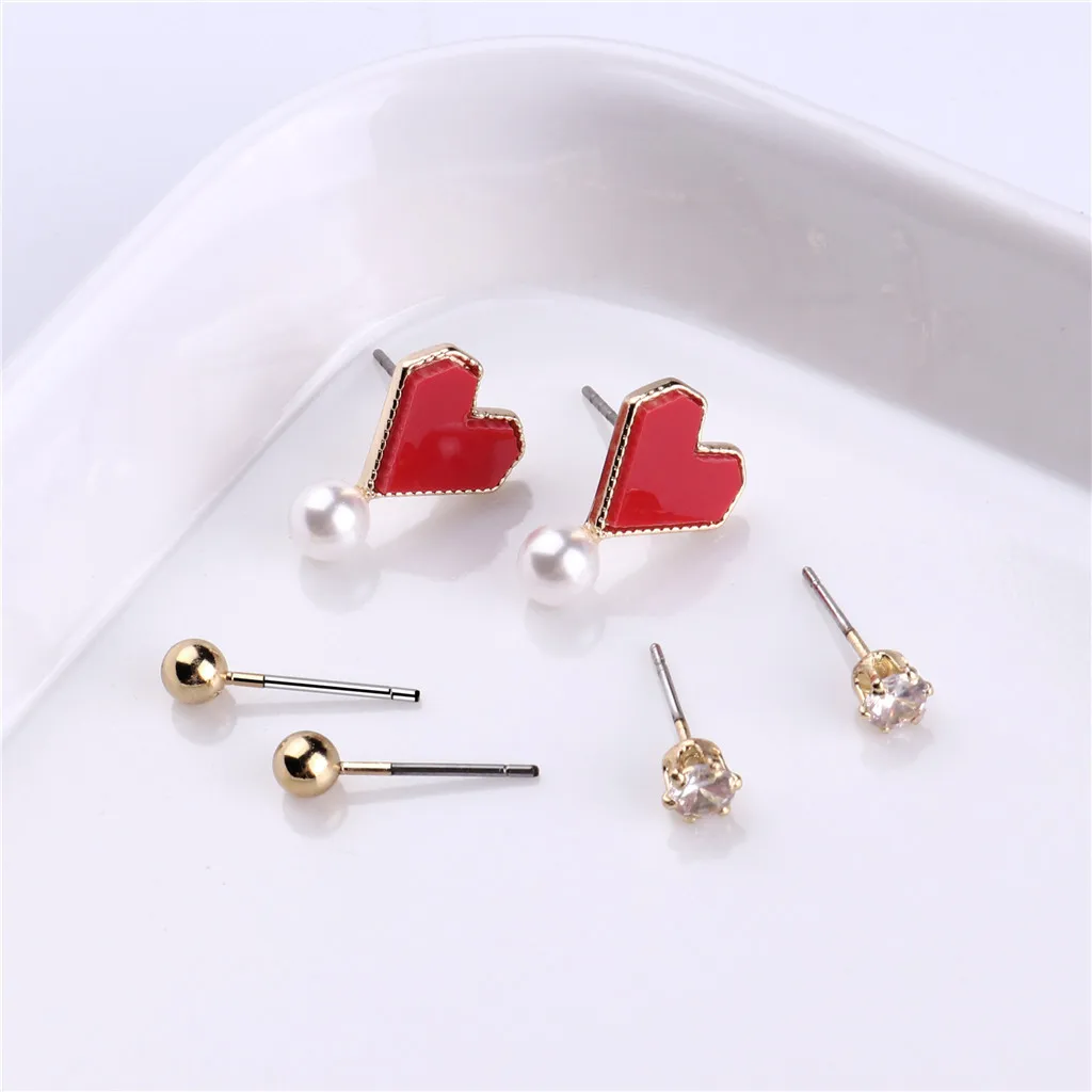 Мода Любовь жемчужные серьги-гвоздики комплект Европа и Америка циркон серьги