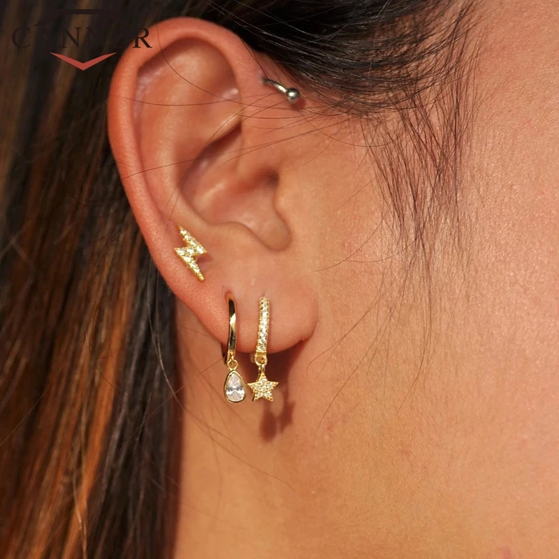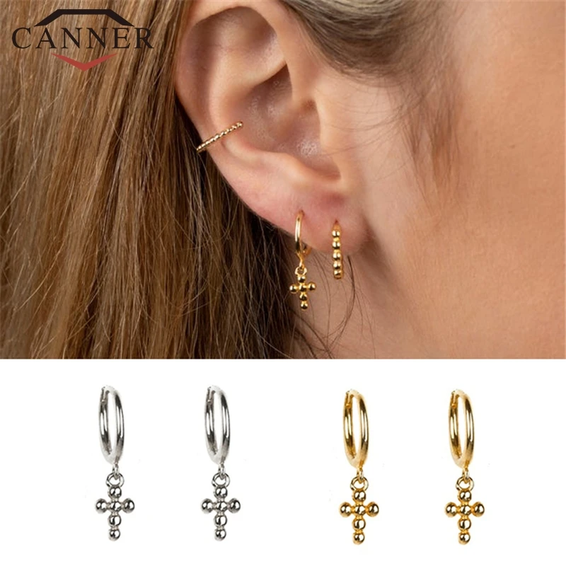 Простой геометрический крест в Звездном стиле с 925 стерлингового серебра маленькие серьги-кольца для женщин, круглые крошечные обруч серьги женские, ювилирные изделия Аксессуары