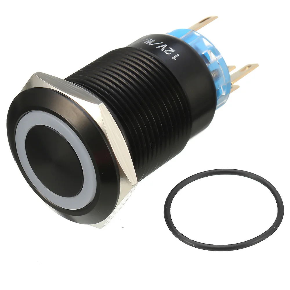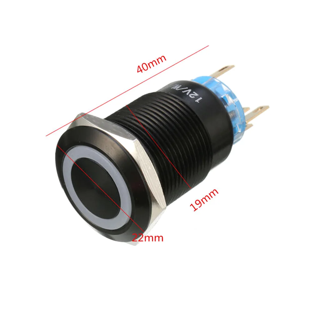 Этот кнопочный переключатель подходит для монтажного отверстия диаметром 19 мм.