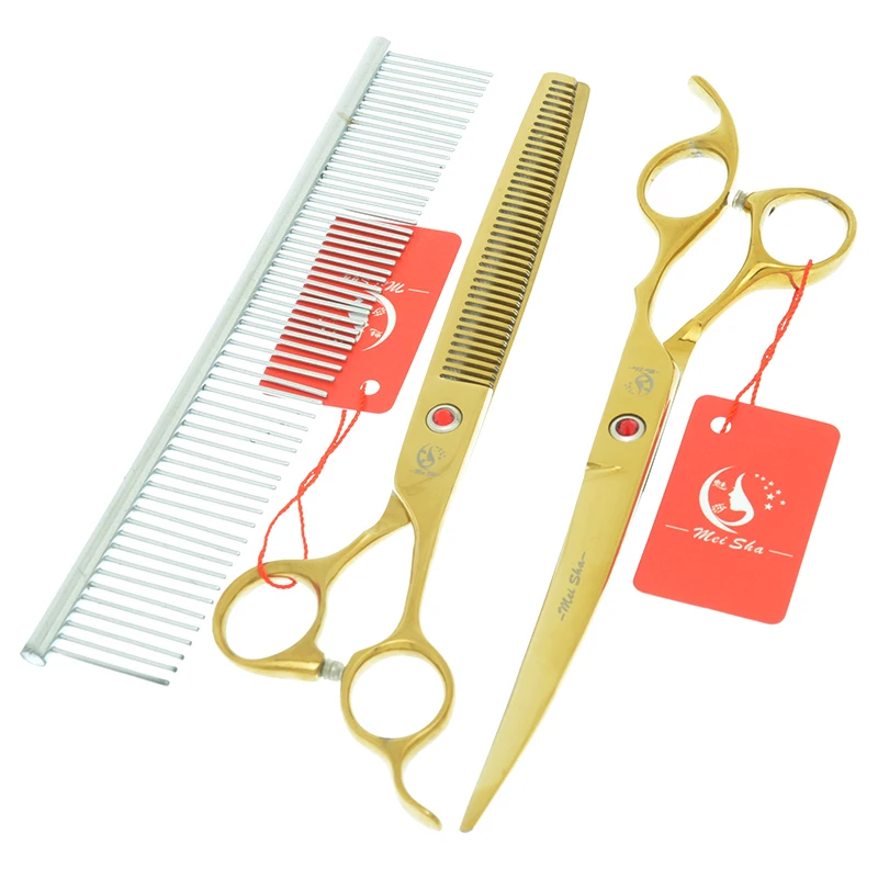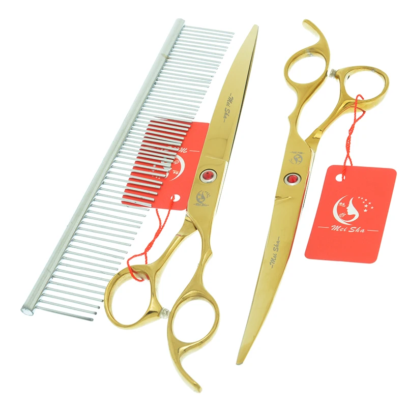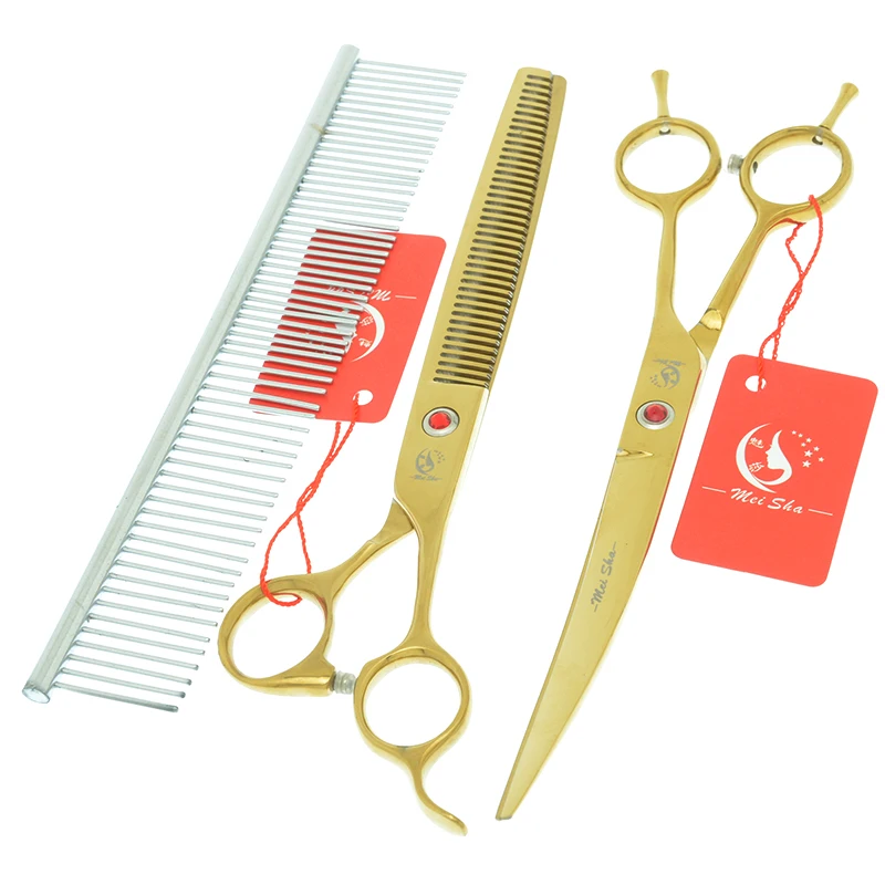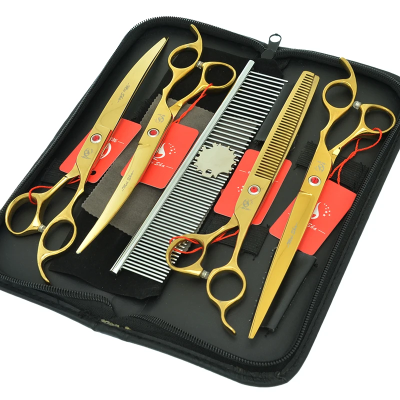 Тип товара: Профессиональные парикмахерские инструменты для ухода за собаками Наименование товара: ножницы для стрижки собак Материал: Япония 440c Уровень защиты: 62HRC Размер режущих ножниц: 22 см (8 дюймов) Филировочные ножницы размер: 20,2 см (7,5 дюйма 40 зубов) Цвет: золотистый Детали упаковки (некоторые типы на выбор) 4 шт. набор ножниц с сумкой 1. 4 шт ножницы комбинация на ваш выбор 2. 1 шт овчины 3,1 шт. регулятор 4,1 шт. гребень 5. 1 сумка для ножниц Набор ножниц с сумкой из 3 предметов 1. 3 шт ножницы комбинация на ваш выбор 2. 1 шт овчины 3,1 шт. регулятор 4,1 шт. гребень 5. 1 сумка для ножниц 1 шт. ножницы без мешка 1. 1 шт. ножницы на ваш выбор 2. 1 шт овчины 3,1 шт. регулятор 1 шт. расческа или гемостатические щипцы в зависимости от того, какой вы выберете