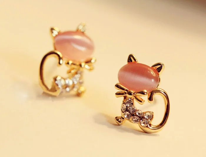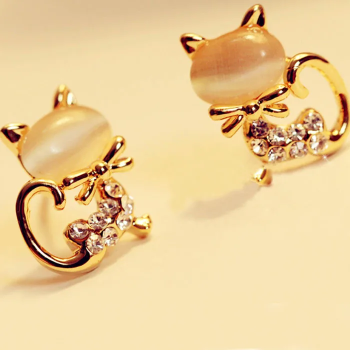 1 пара корейских модных милых Кошачьи камни, кристаллы, стразы женские серьги-гвоздики(Без Упаковка для розничной продажи)