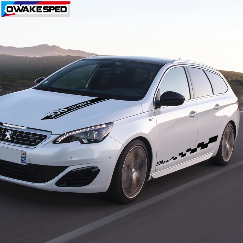 Автомобильная наклейка для PEUGEOT 308 SW CC GT капот автомобиля спортивные полосы авто дверь боковая юбка виниловые наклейки внешние аксессуары