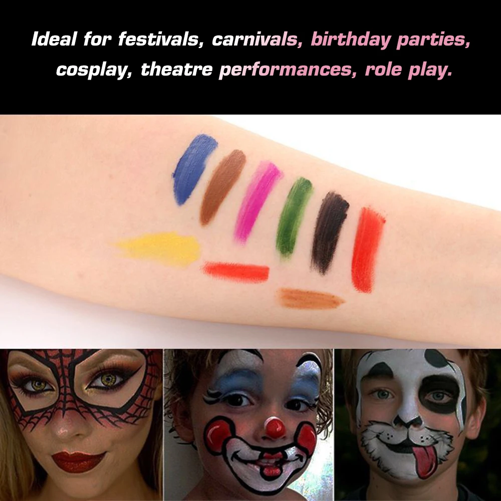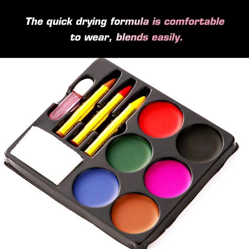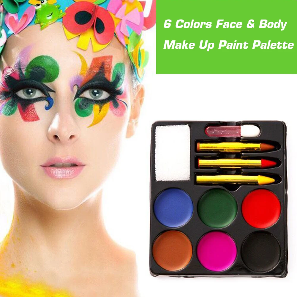 Эта палитра краски для лица и тела предлагает 6 цветов, которые могут удовлетворить основные потребности в макияже. Вы также можете создавать новые цвета, смешивая их. Изготовлен из высококачественного материала, который обеспечивает безопасный и блестящий Макияж для вас.