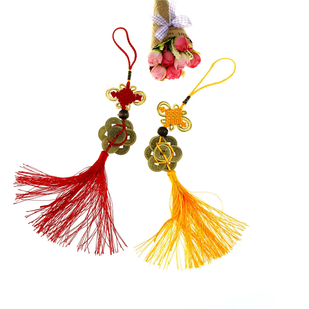 10 счастливых очаровательных древних монет I CHING защита процветания хорошее состояние домашний Декор автомобиля красный китайский узел фэн шуй набор