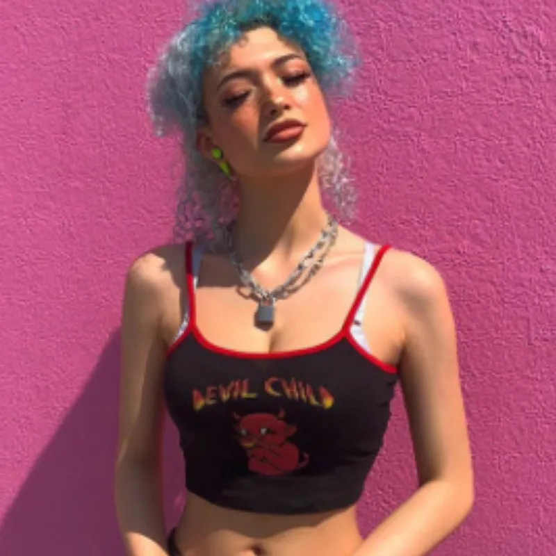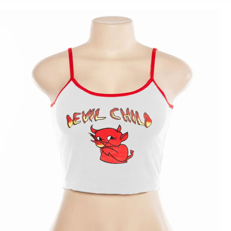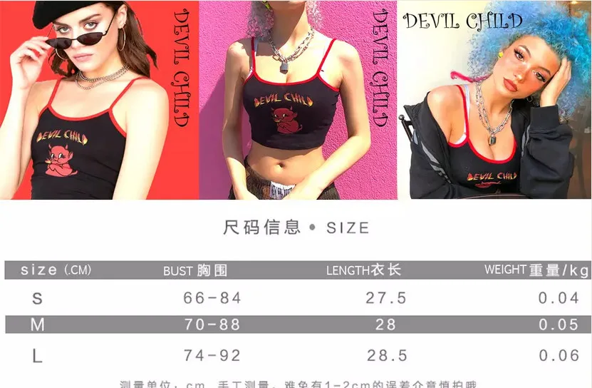 Здравствуйте! Добро пожаловать в наш магазин! Модный дизайн, 100% новый, высокое качество! Качество на первом месте и самый лучший сервис. Все покупатели — наши друзья. Женский короткий жилет на бретельках с рисунком дьявола на Хэллоуин, праздничные рубашки без рукавов Материал: смешанный хлопок Цвет: черный Стиль: Модный, сексуальный Размер: S , M, L