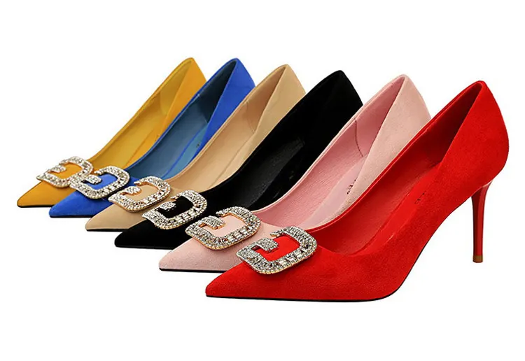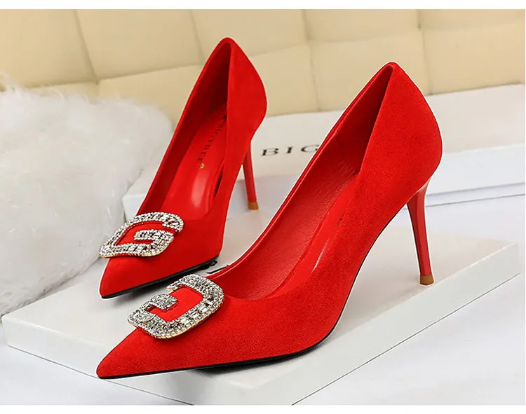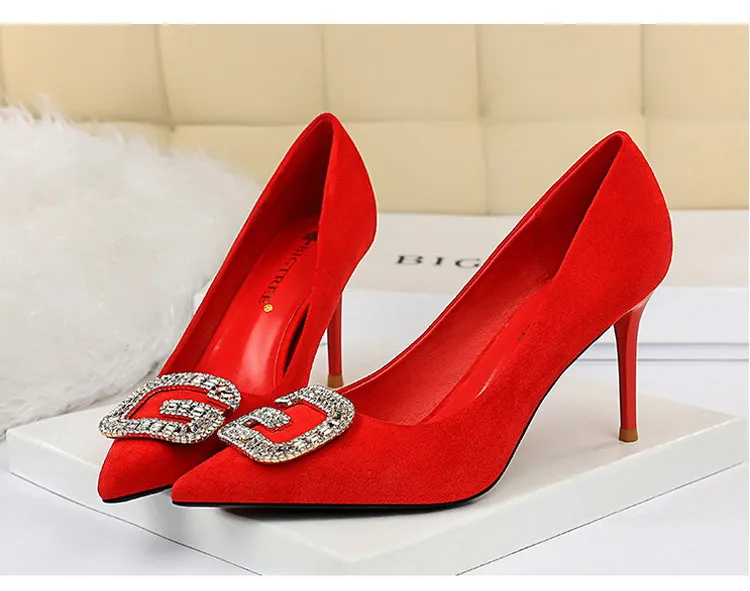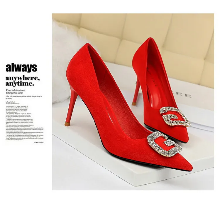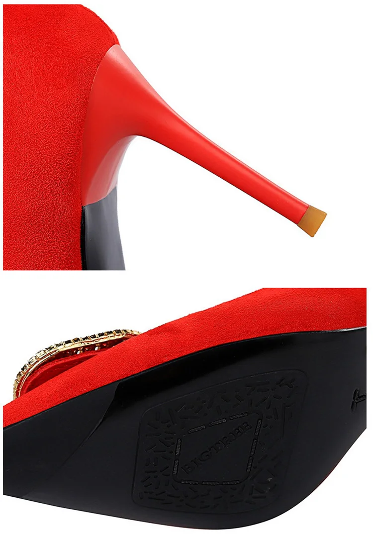 Модная новинка; Женские туфли-лодочки пикантные туфли на выход металлические стразы на высоком каблуке красного цвета, женские туфли на высоком каблуке свадебные туфли женская обувь, большие размеры 42, 43